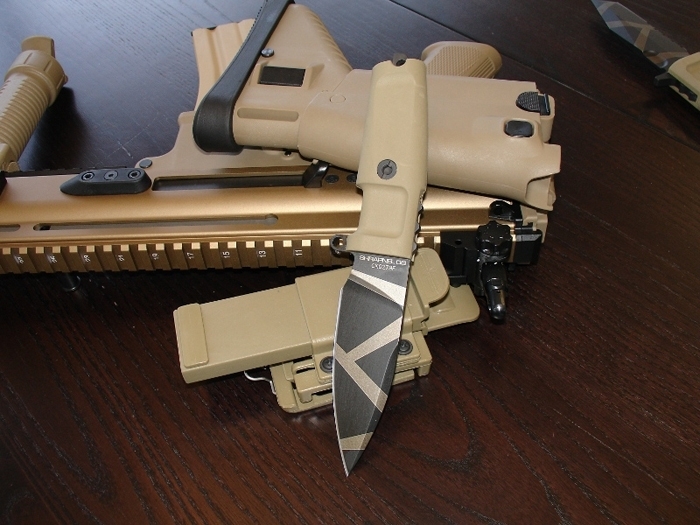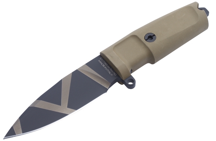 The Extrema Ratio Shrapnel OG Desert Warfare is a versatile back-up knife with the distinctive features of a combat knife