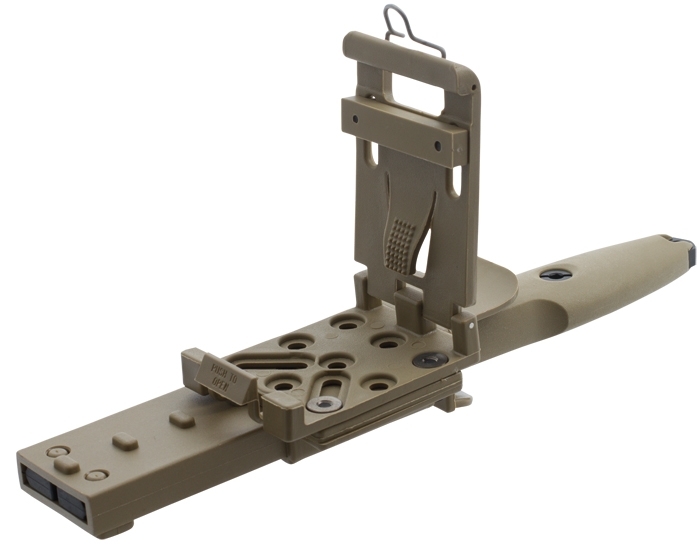 The included sheath with Tek-Lok attachment can be worn vertically, horizontally or diagonally (at a 45° angle).