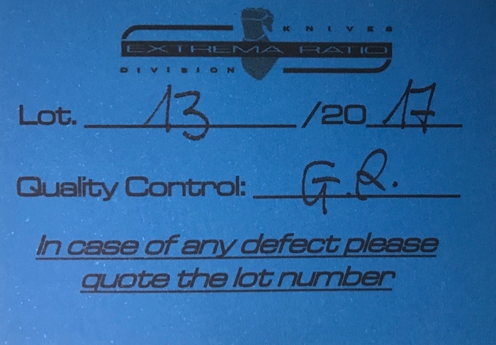 Extrema Ratio® is certified according to UNI EN ISO 9001:2008 and NATO Code (N/CAGE) AD856.