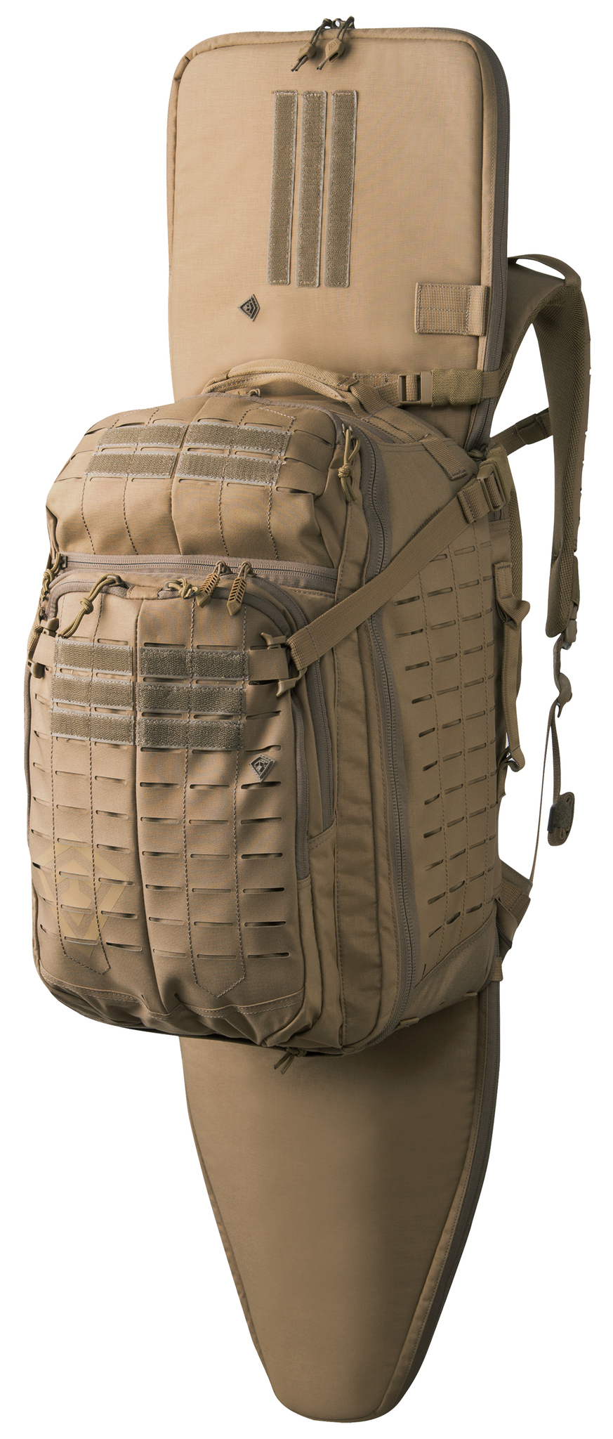 1-Day Plus Backpack from the Tactix series of First Tactical™ impresses with its extremely robust and innovative Lynx™ Laser Cut and the Hook & Hang Thru™ rifle pocket mount.