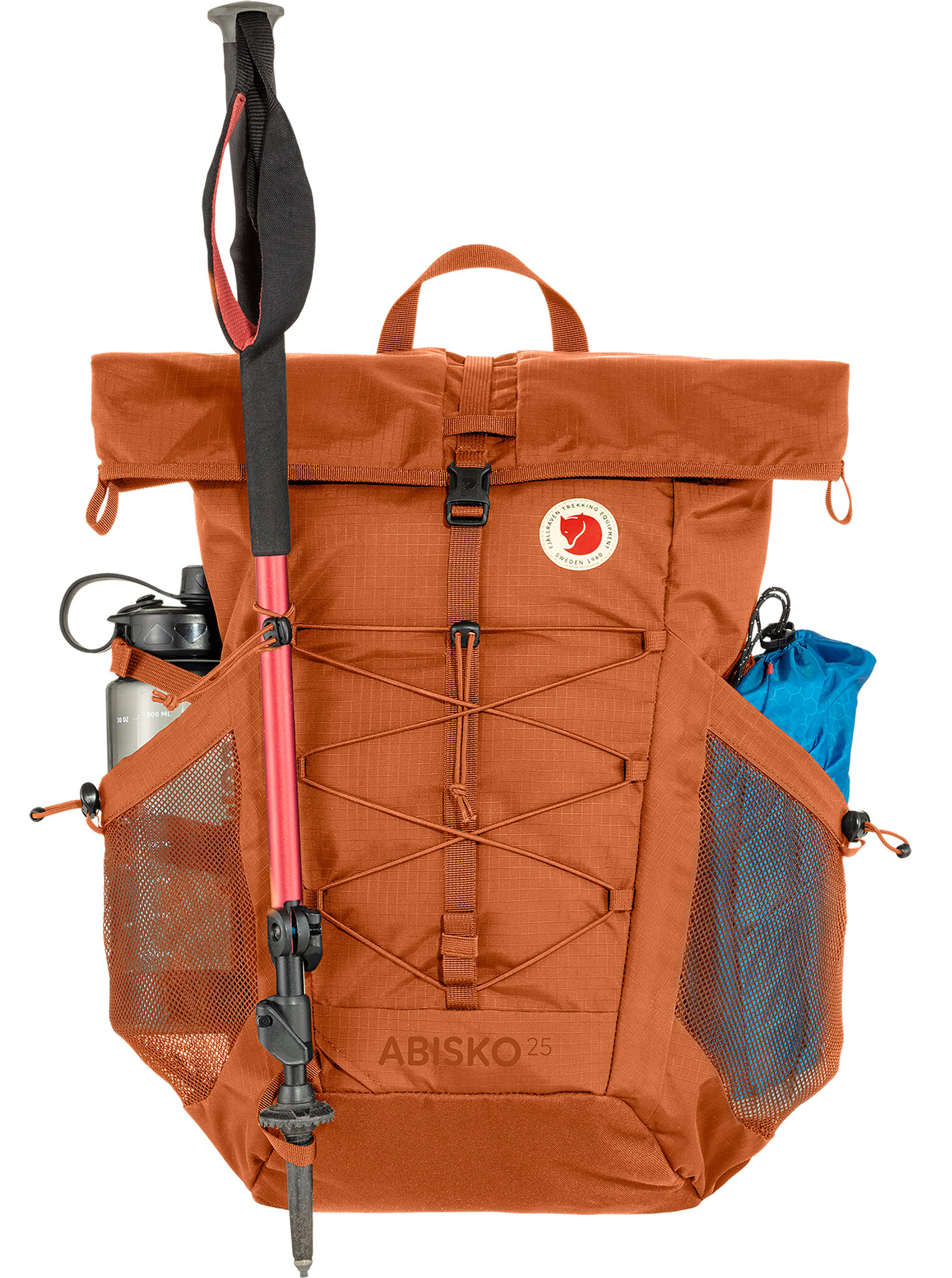The Abisko Hike Foldsack from the traditional brand Fjaellraeven. A versatile and lightweight daypack, with 25 L capacity. The Foldsack is perfect for day hikes and as an extra pack when traveling. A sustainably produced backpack made from 100% recycled nylon.