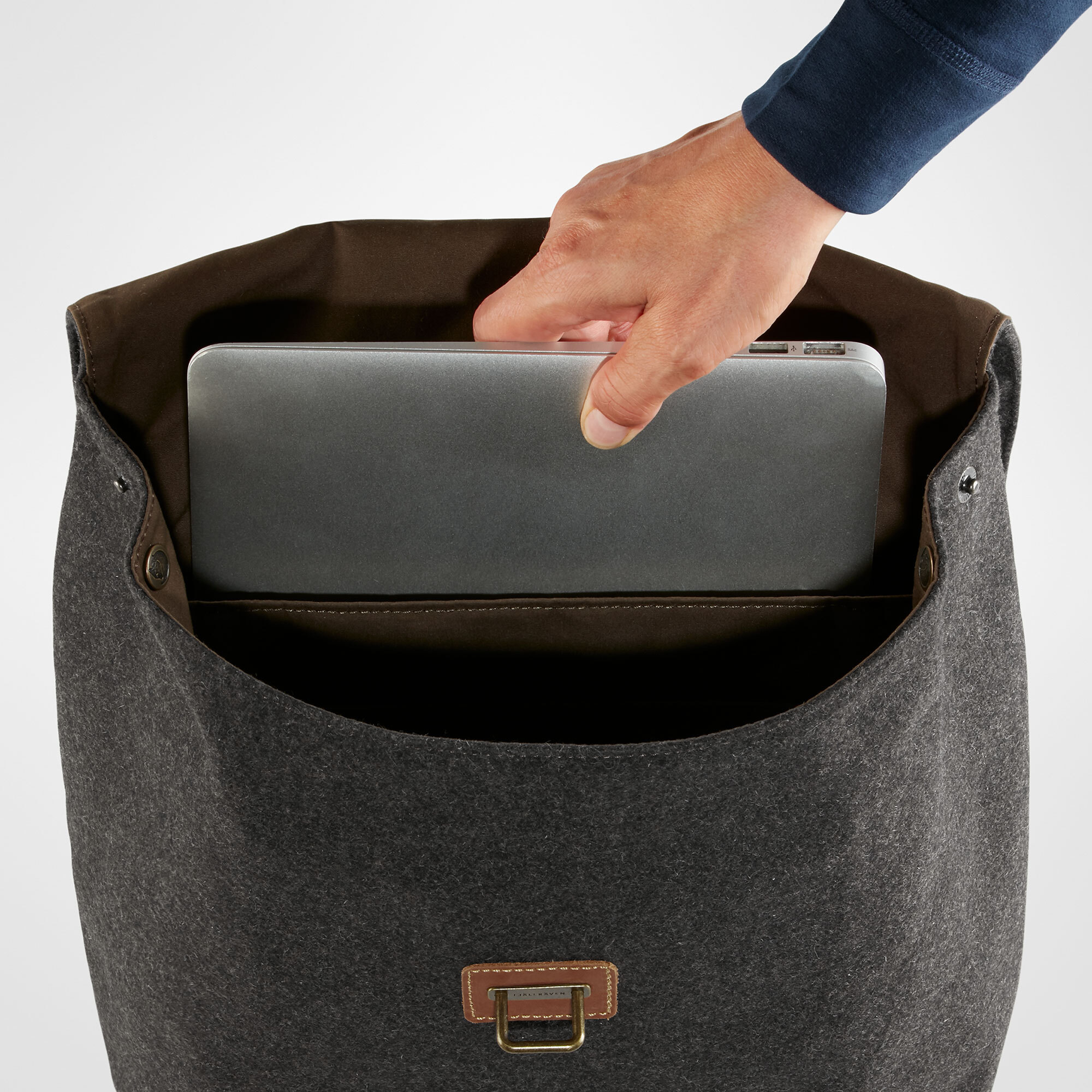 The Fjaellraeven Norrvage Backpack Lightweight, timeless 16 Ltr. backpack in fantastic Melton fabric -recycled wool, beautifully finished and details in natural leather. Practical everyday backpack with urban charm.