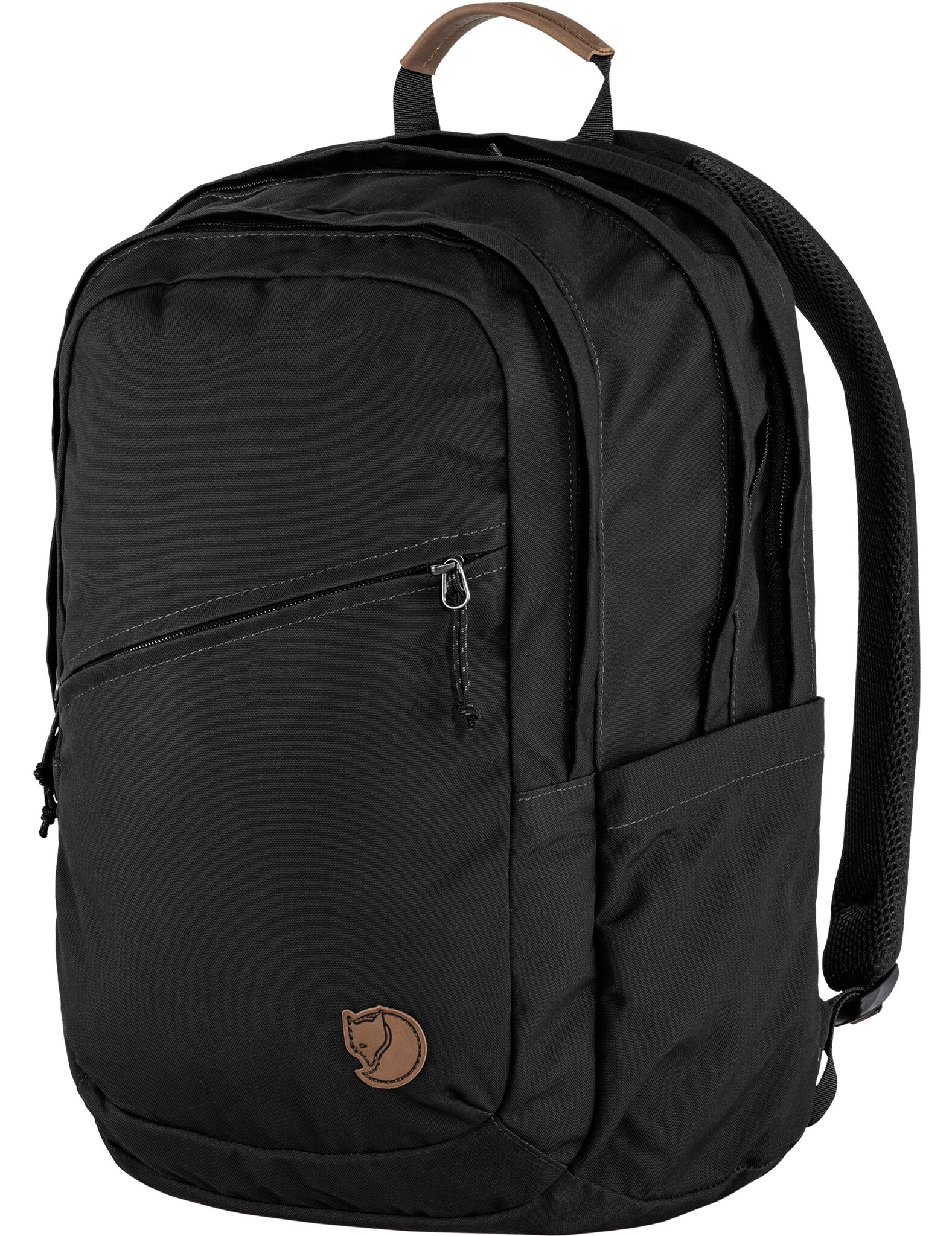 With the Raeven 28, Fjaellraeven has designed a simple, durable 28-liter daypack with practical pockets and compartments. The zippered main compartment of the Raeven 28 has a padded laptop compartment for laptops or tablets up to 15 inches and a zippered security pocket inside. This Fjaellraeven backpack also features a zippered front pocket and mesh organizer pockets on the inside, a fleece-lined top pocket, a padded airmesh back panel and comfortable shoulder straps. A robust leather carry handle rounds off the design.