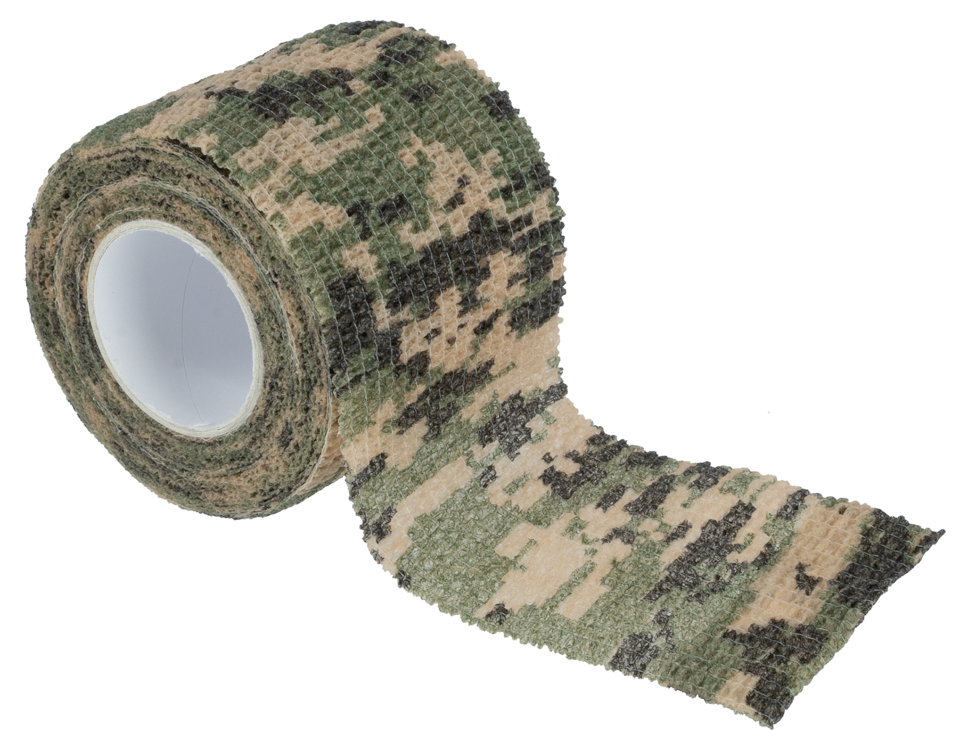 Self-adhesive, stretchable camouflage tape. The adhesive tape is ideal for camouflaging weapons, knives, binoculars and many other products.