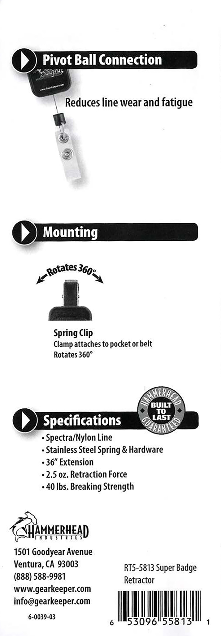 Защитное кольцо и фиксатор GearKeeper RT5 badge retractor with clip (badge clip incl. pull-out)