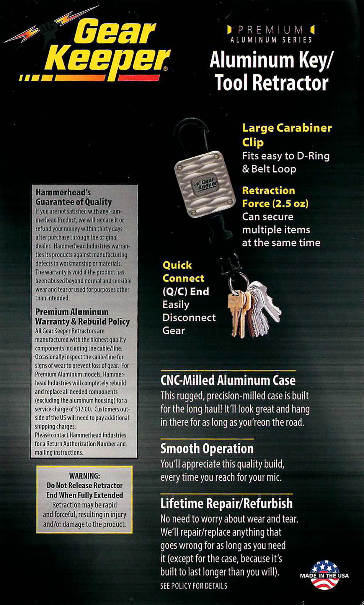 GearKeeper grants a "Lifelong Guaranty" on this product!