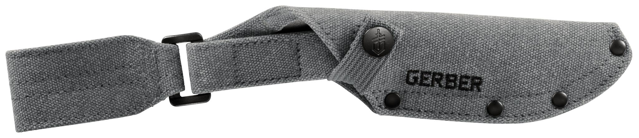 The Gerber Downwind Drop Point hunting knife is a successful combination of tradition, modern materials and design. A classic drop point blade made of 7Cr stainless steel in full tang construction is the ideal choice as an all-round workhorse. Fine grooves on the back of the handle and blade provide maximum grip and precision. The ergonomic handle design combined with G10 handle scales allows for fatigue-free work with excellent grip. A lanyard loop and a gray waxed canvas sheath complete the features.