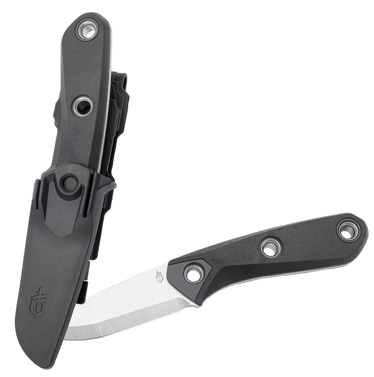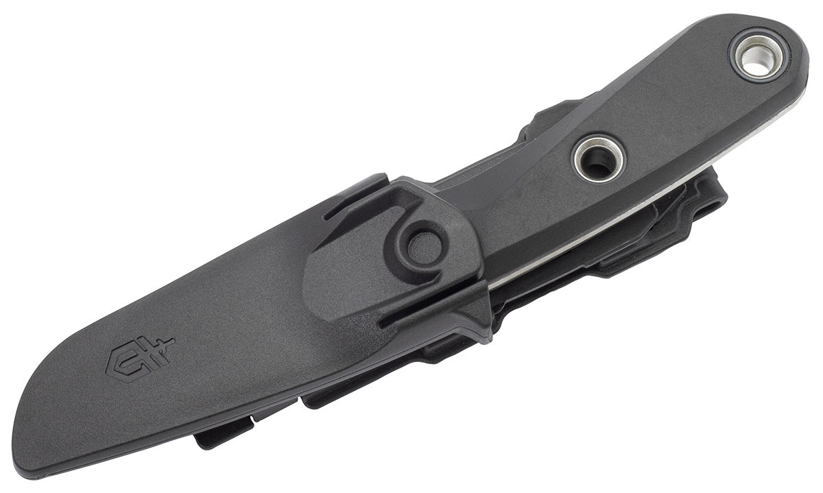 The Gerber Principle is a compact fixed knife and optimally suited for bushcraft as well as for survival. The 8.5 cm long blade with Scandi grind made of US 420HC stainless steel is very sharp. The roughened back of the blade is suitable for use with a fire starter. just like the back of the blade. The rubberized handle provides a secure, non-slip grip and feels good in the hand. The three holes in the handle offer the possibility to attach the knife to a stick to use it as a spear point. The multifunctional and modular knife sheath allows the Principle to be carried in a variety of ways - on a belt, on a MOLLE system, horizontally or vertically.