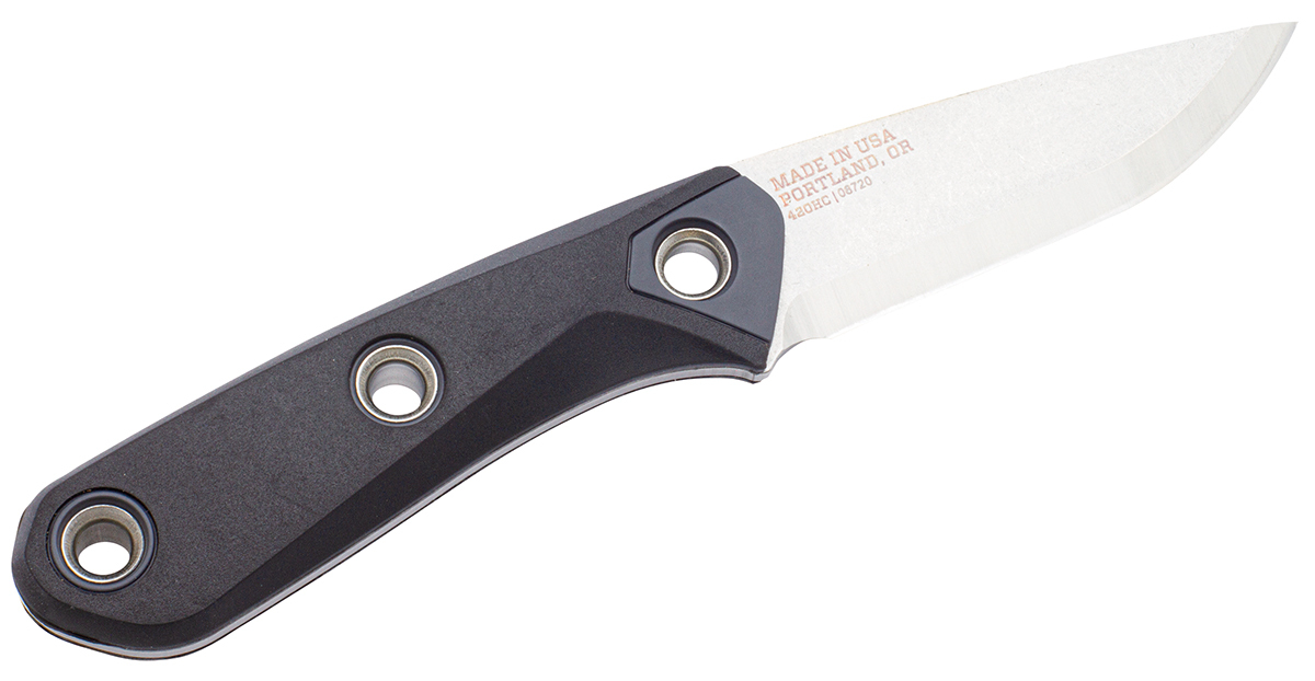 Drop point blade with scandi grind.