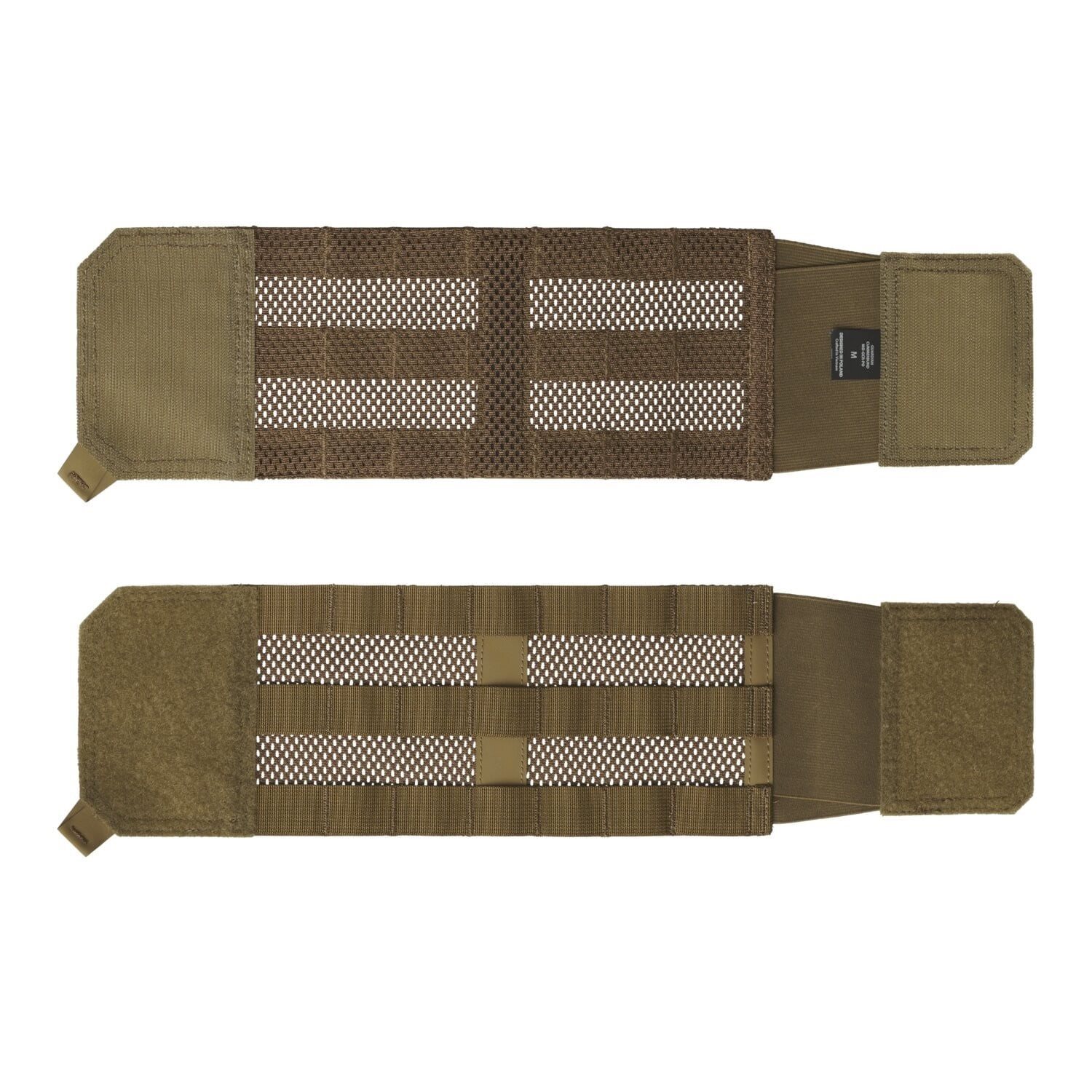 Cummerbund is a set of two side panels that allows you to fasten the front and back parts of the vest. Thanks to the universal design, the product is compatible with other plate carriers available on the market. The cummerbund is made of durable construction mesh ensuring adequate ventilation, even with the equipment installed. A modular system compatible with MOLLE/PALS is sewn on the surface. A skeleton panel made of non-slip Hypalon material is sewn under the straps of the modular system, which not only stabilizes the equipment being carried, but also ensures the appropriate stiffness of the cummerbund itself. The panels are attached to the vest using Velcro. Anti-slip Hypalon handles make it easier to firmly grip the cummerbund when fastening and unfastening it.
