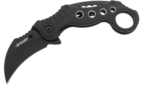Haller one-hand knife Karambit All Black with spring-assisted blade opening.