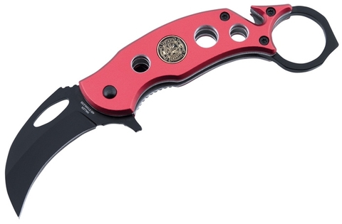 Spring assisted karambit pocket knife with a 420 stainless steel blade.