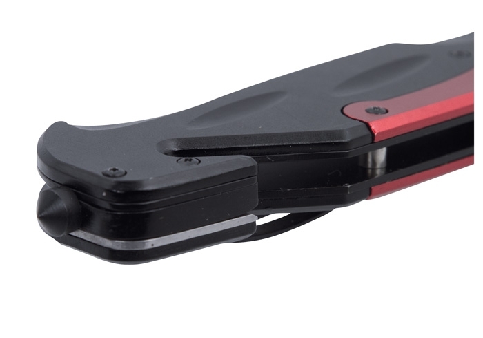 Rescue knife Rescue in XXL format from Haller with belt clip, belt cutter and glass breaker. The spring-loaded 420 stainless steel blade opens in a flash and locks securely in the working position thanks to the liner lock process.