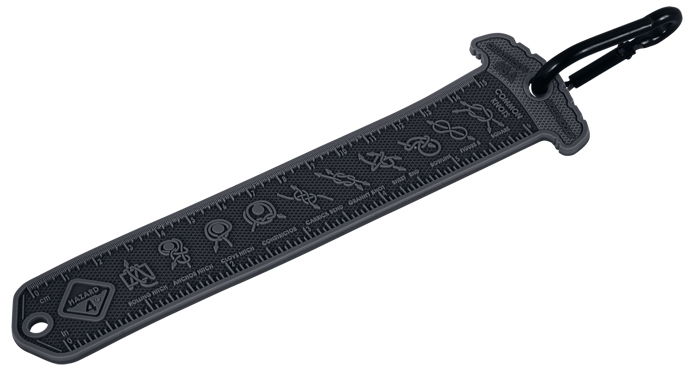 The Hazard 4® Cheatstick™ is a high quality pendant made of polymer rubber with printed knot lore and ruler. As a practical pendant on a keychain, backpack, bag, etc.