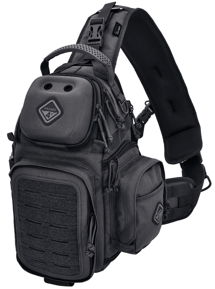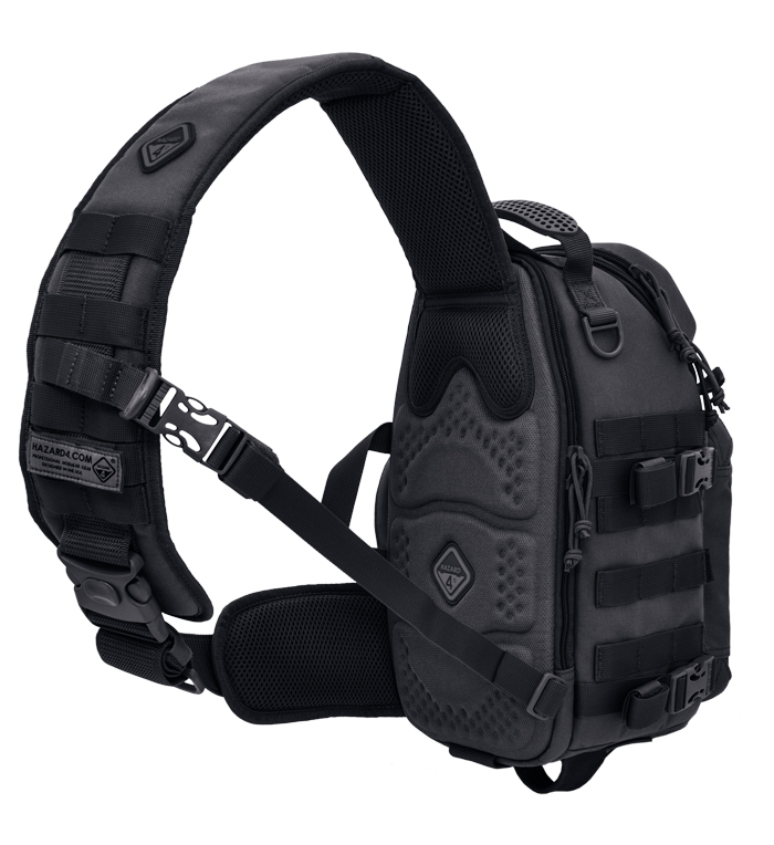 Hazard 4® rubber patches on hard case, side pocket and back pad.