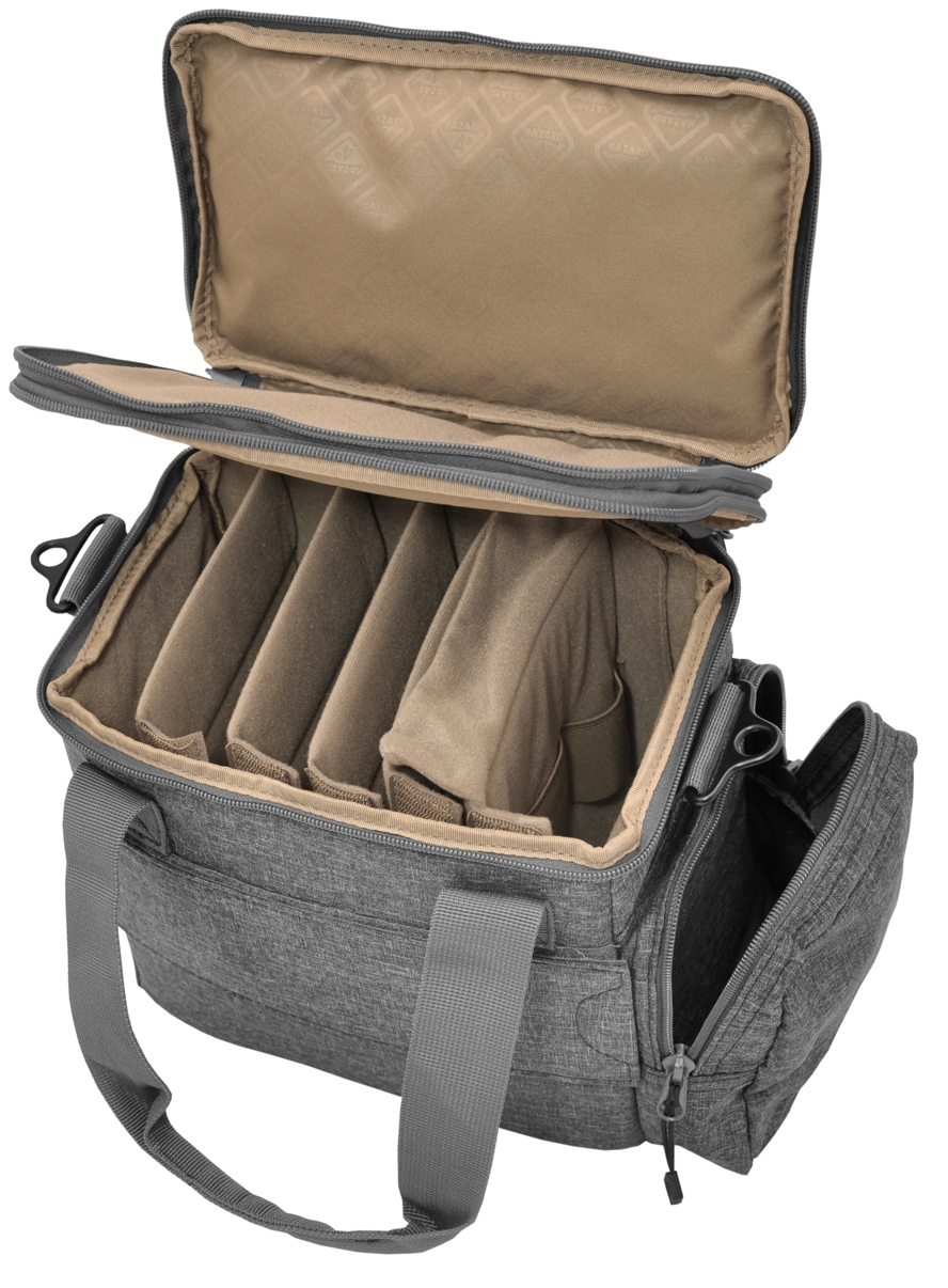The M.P.C.™ (Multi Pistol Carrier) from Hazard4® is an all-around padded carrying case with room for 6-14 pistols (depending on grip / barrel length). It has a compact size with 360° padded protection with 6 padded dividers, locking zippers for ammo pouches, magazines, etc. The Grayman™ Multi Pistol Carrier from Hazard4®'s Civilian Lab® series is specifically designed for covert operations and has an unobtrusive, civilian design