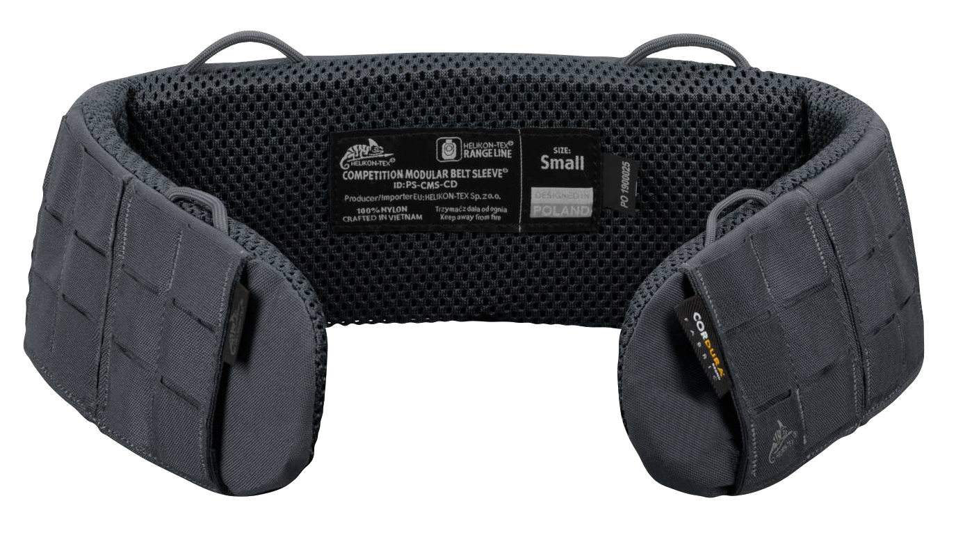 The Helikon Competition Modular Belt Sleeve is a padded MOLLE gear platform designed for the Helikon Competition Nautic Shooting Belt (item 331705), but can also be worn with other belts up to 45mm wide. The belt is fully padded with thick, durable EVA foam, which ensures optimal and comfortable wear. On the outside there are laser-cut modular platforms compatible with the MOLLE / PALS system. The platforms are divided into sections so you can weave your belt to the outside for holster mounting. On the sides there are two horizontal slots on the bottom for attaching thigh platforms. The belt is ergonomically designed and lined with mesh for comfort during extended use. Four flat paracord loops allow mounting of any harness.