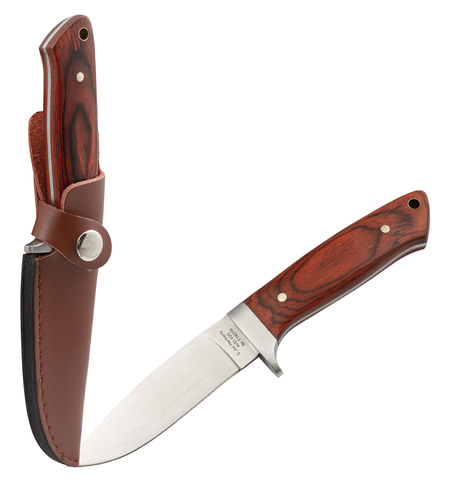Herbertz belt knife with fixed drop point stainless steel blade with pakka wood scales and stainless steel bolsters.