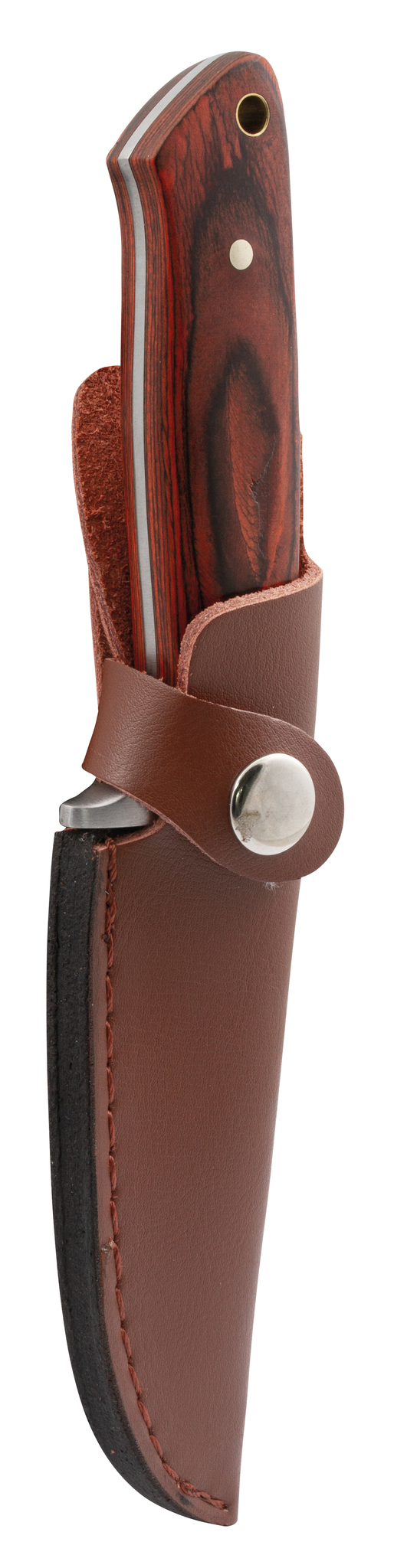 The Herbertz belt knife is perfect for everyday use. This compact Herbertz knife is equipped with a fixed drop-point blade made of AISI 420 stainless steel. The handle impresses with cleanly finished pakka wood scales and stainless steel bolsters. A leather sheath is included.