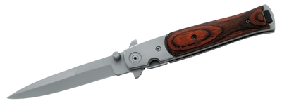 The handle is equipped with beautiful pakka wood scales, stainless steel bolsters and a practical belt clip