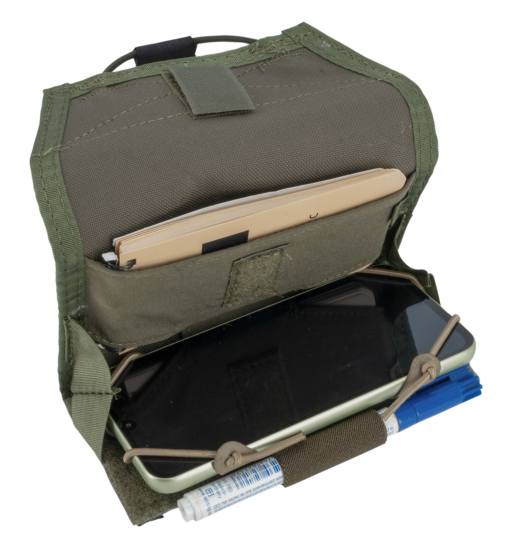 This compact admin pouch is designed to hold most smartphones with or without a protective case and provide easy access for using navigation apps. When opened, the bottom flap is held at a 90-degree angle to the ground for quick viewing. The included smartphone holder is adjustable and removable, allowing the user to take the phone out of the case without removing the holder. The Navigator also features a storage compartment and two loops for compact battery packs, notebooks, pens, cable management, etc.