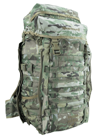 The Karrimor Predator PATROL 45 is a high quality single compartment backpack designed for 21st century forces with reliable and resilient Palm backpack carrying system, with side YKK-RV attachment for two PLCE or Predator side pockets.