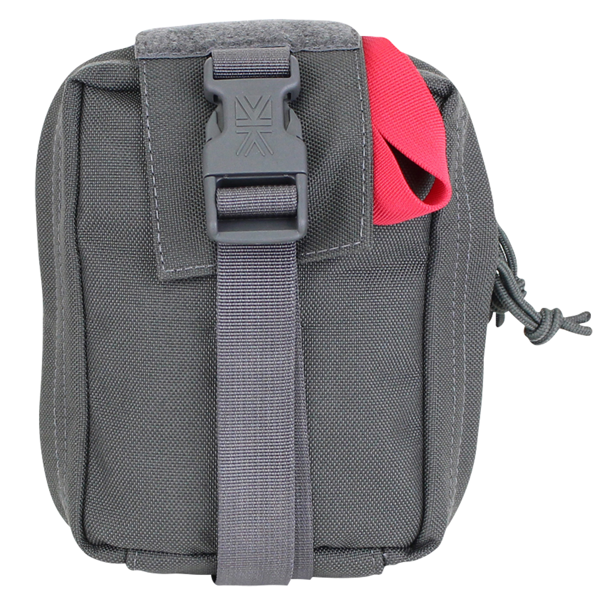 The design consists of two parts, a removable medical pouch with high visibility grab handle and a back plate with QR modular attachment. In normal use, the detachable pouch is attached to the back plate with Velcro and a buckle. When needed, the buckle can be released and the pouch can be pulled off to be carried or thrown to the victim and emergency scene. The modular QR-MOLLE system allows for quick on and off and secure attachment to MOLLE loops.