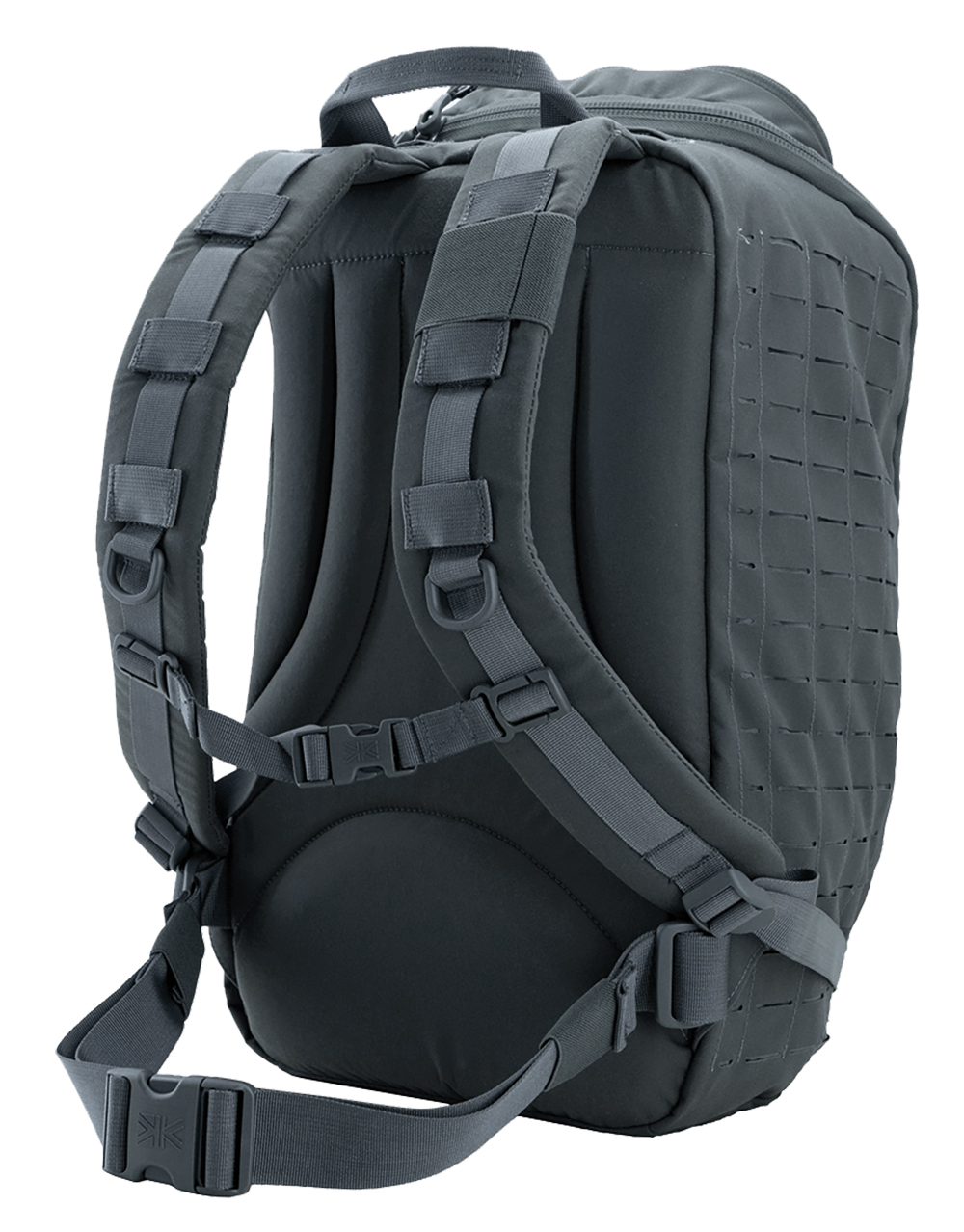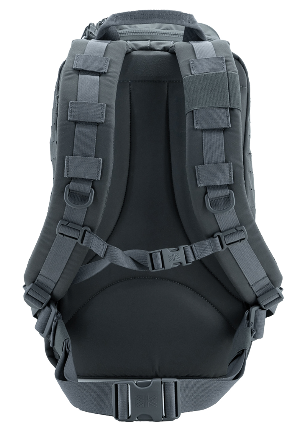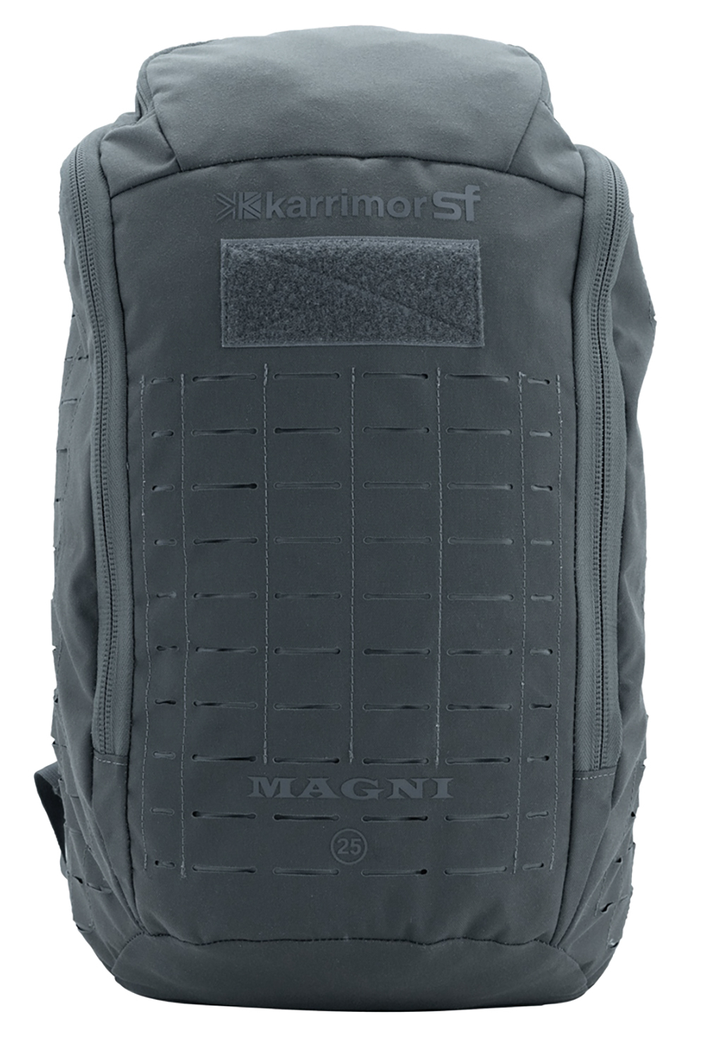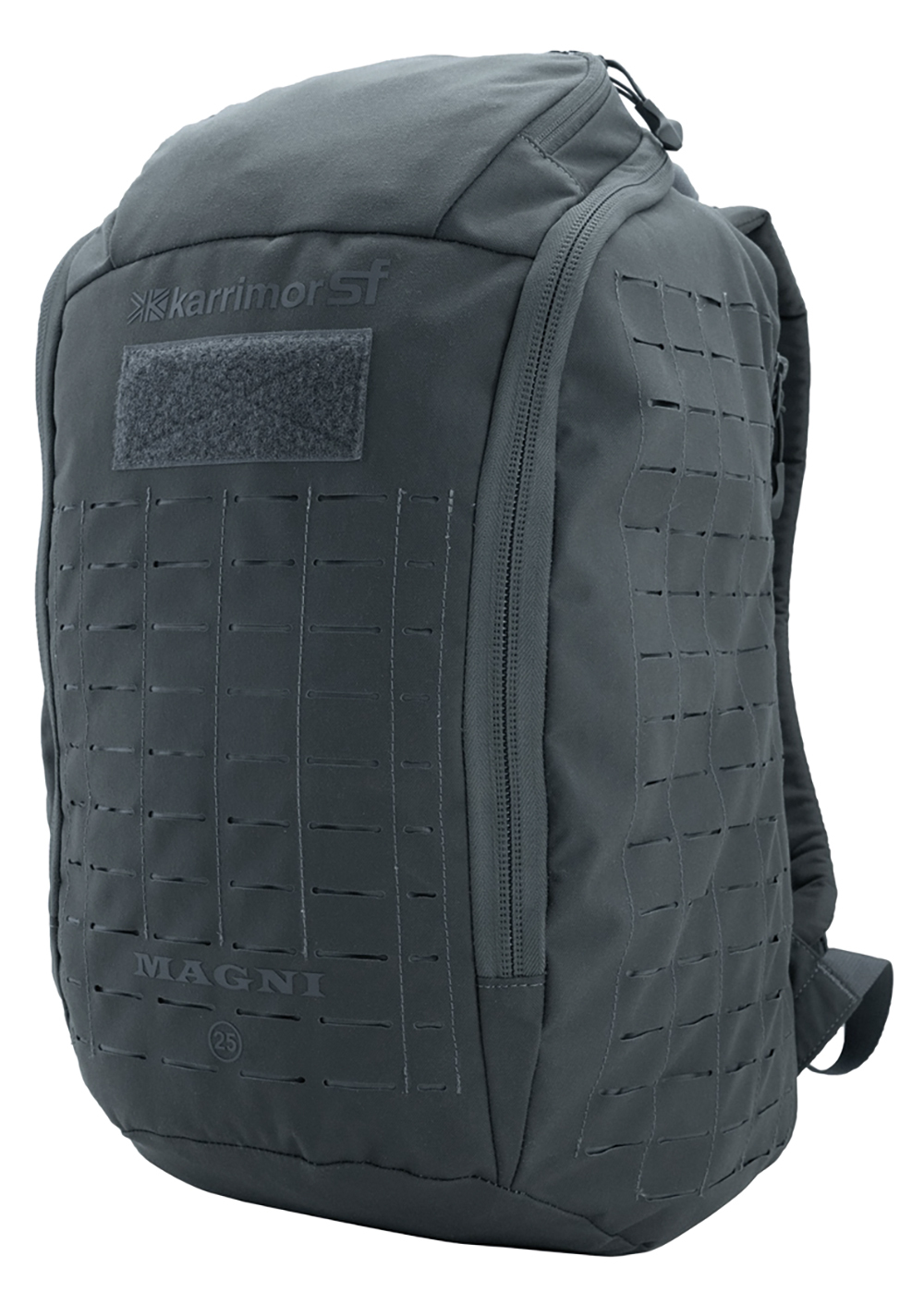 The Magni 25 Patrol Pack from the Nordic series of Karrimor SF is designed to meet the requirements of a medium patrol backpack. Like its little brother Modi 15, it features a durable lasercut laminated surface. The lasercut laminated fabric reduces weight and complexity and provides a clean, modern look. The Magni 25 design includes a soft-lined top compartment and a wide-opening main compartment. Inside is a laptop/ hydration bladder compartment, organizer and zippered pockets