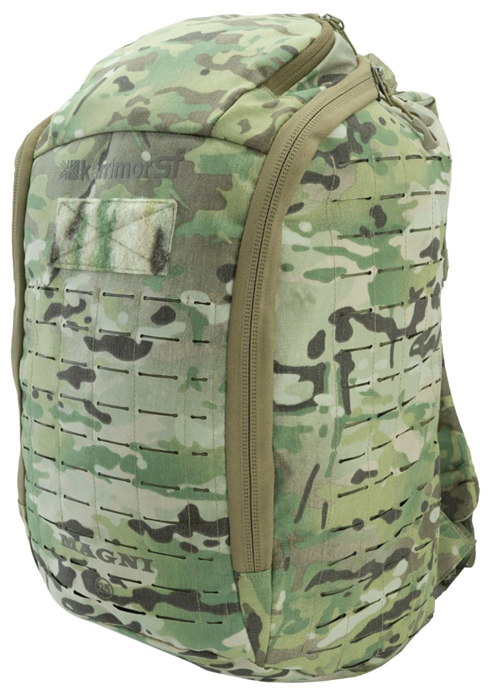 The Magni 25 Patrol Pack from the Nordic series of Karrimor SF is designed to meet the requirements of a medium patrol backpack. Like its little brother Modi 15, it features a durable lasercut laminated surface. The lasercut laminated fabric reduces weight and complexity and provides a clean, modern look. The Magni 25 design includes a soft-lined top compartment and a wide-opening main compartment. Inside is a laptop/ hydration bladder compartment, organizer and zippered pockets