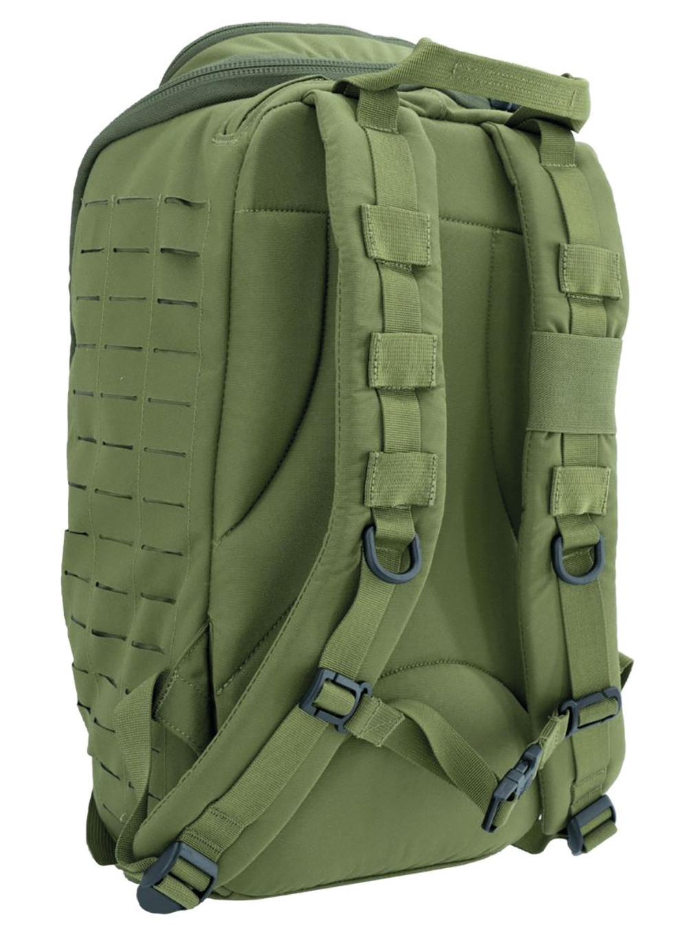 The Modi 15 Patrol Pack from the Nordic Series by Karrimor SF is designed to meet the needs of a smaller patrol backpack. Constructed with rugged lasercut laminated surface. Lasercut laminated fabric reduces weight and complexity and provides a clean, modern look. Modi 15 design includes a soft-lined top compartment and a wide-opening main compartment. Inside is a laptop/ hydration bladder compartment, organizer and zippered pockets
