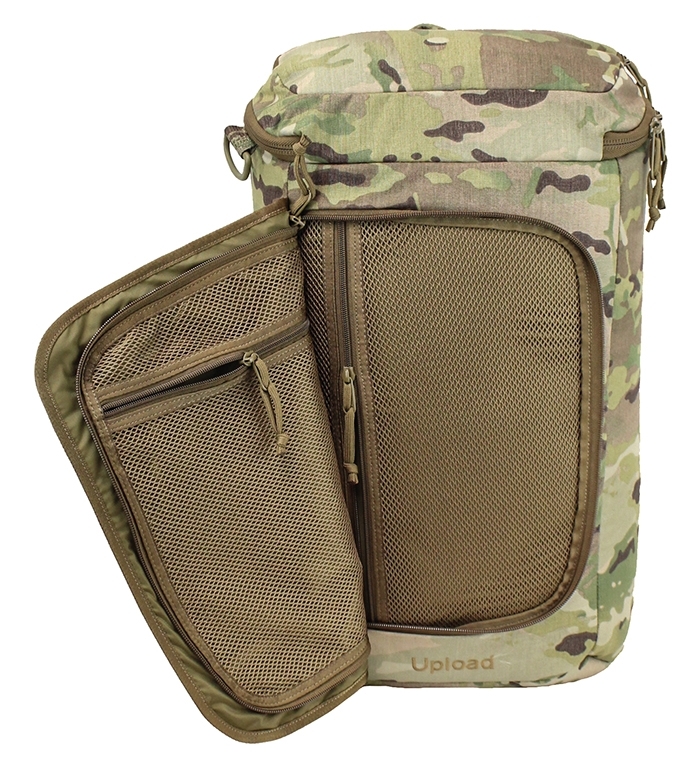 The Karrimor SF Upload Laptop Bag was originally designed for the British military to safely transport the Getac S4XX computers. The padded interior compartment is suitable for laptops up to 30 x 35 cm. The Upload Laptop Bag can be used in various configurations, such as a backpack with shoulder straps, a briefcase with concealed shoulder straps, and a shoulder bag with detachable shoulder strap. The Upload Laptop Bag includes an internal padded compartment for the laptop and several other compartments for cables and related items such as power adapter and USB sticks. The Upload is made of KS500e, a 500-denier nylon fabric coated with a silicone / PU elastomer for improved tear strength and flex resistance. Finished with a water repellent fluorocarbon (DWR) that gives the fabric water resistance
