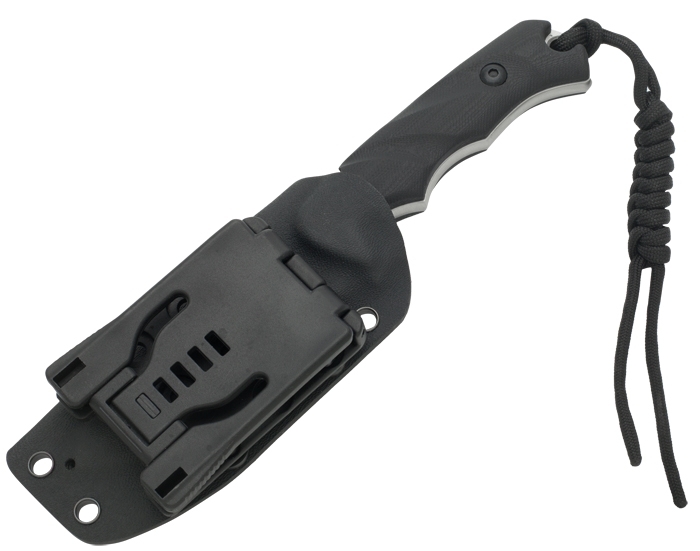 The powerful 6 mm blade of the Haller Select Andri made of 440 stainless steel goes all the way through to the end of the handle. It is rounded at the back, has a thumb rest and a lanyard is attached to the end of the handle. Finger grooves and a molded guard provide hand support. Two G10 extra smooth ground scales are bolted on as handle scales. A stout Kydex sheath and gift box round out the total package.