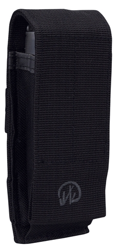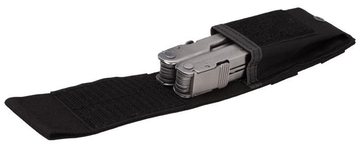 The Leatherman Molle Sheath Large is a holster made of nylon and is attached by a tab located on the back with a snap.