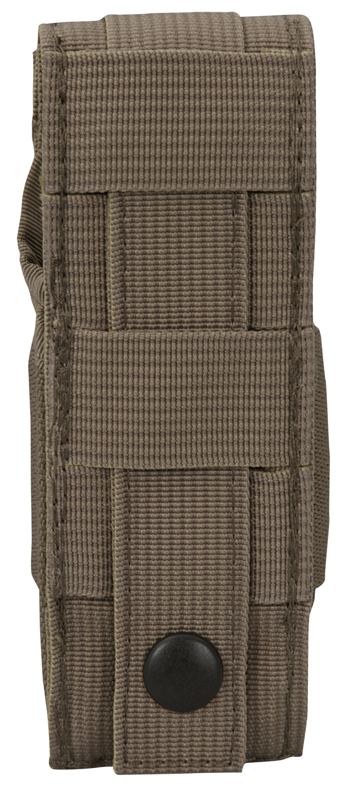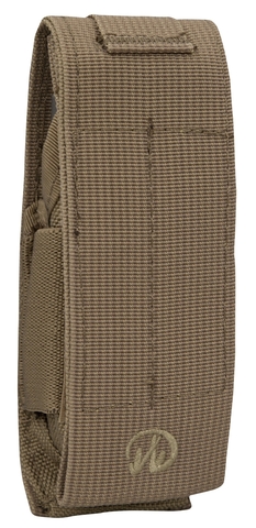 The Leatherman Molle Sheath XL is a holster made of nylon and is attached by a tab with push button located on the back. The additional tab can accommodate the MUT wrench. Features Leatherman logo, Velcro front closure and an inside pocket for bits