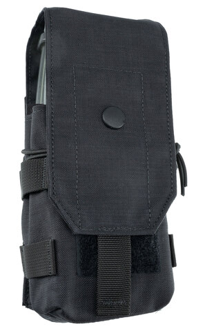 To secure the magazine, you can either close the lid of the PA001/II pouch with Velcro or use the push button.