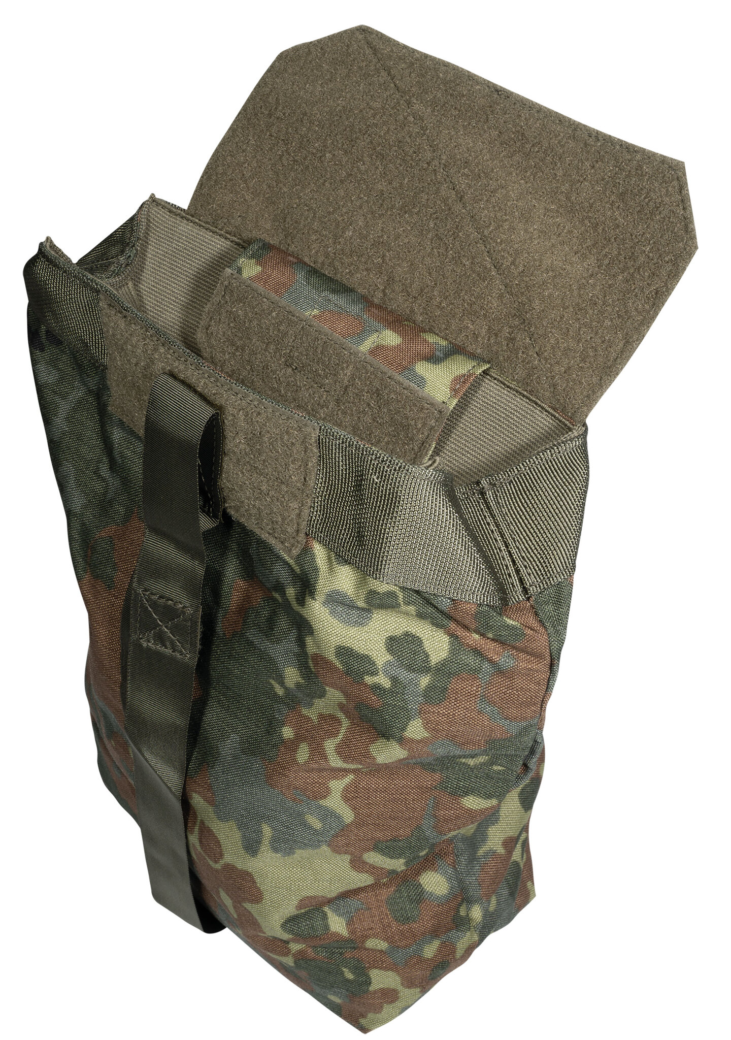 The Velcro Dump Pouch from Lindnerhof can be folded so small that it is an optimal addition for all equipment systems where possibly the MOLLE area is no longer sufficient. The opening of the Dump Pouch is covered by a rubber webbing and keeps the inserted material safely stowed.
