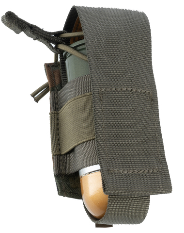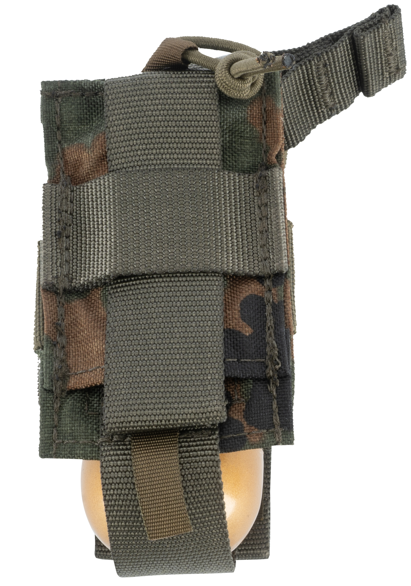 The grenades can be held in the Lindnerhof PA015 either via the variable lid flap or the rubber cord. A half-round elastic band additionally secures the grenades in the pouch. The lid is removable and can be removed when not in use.