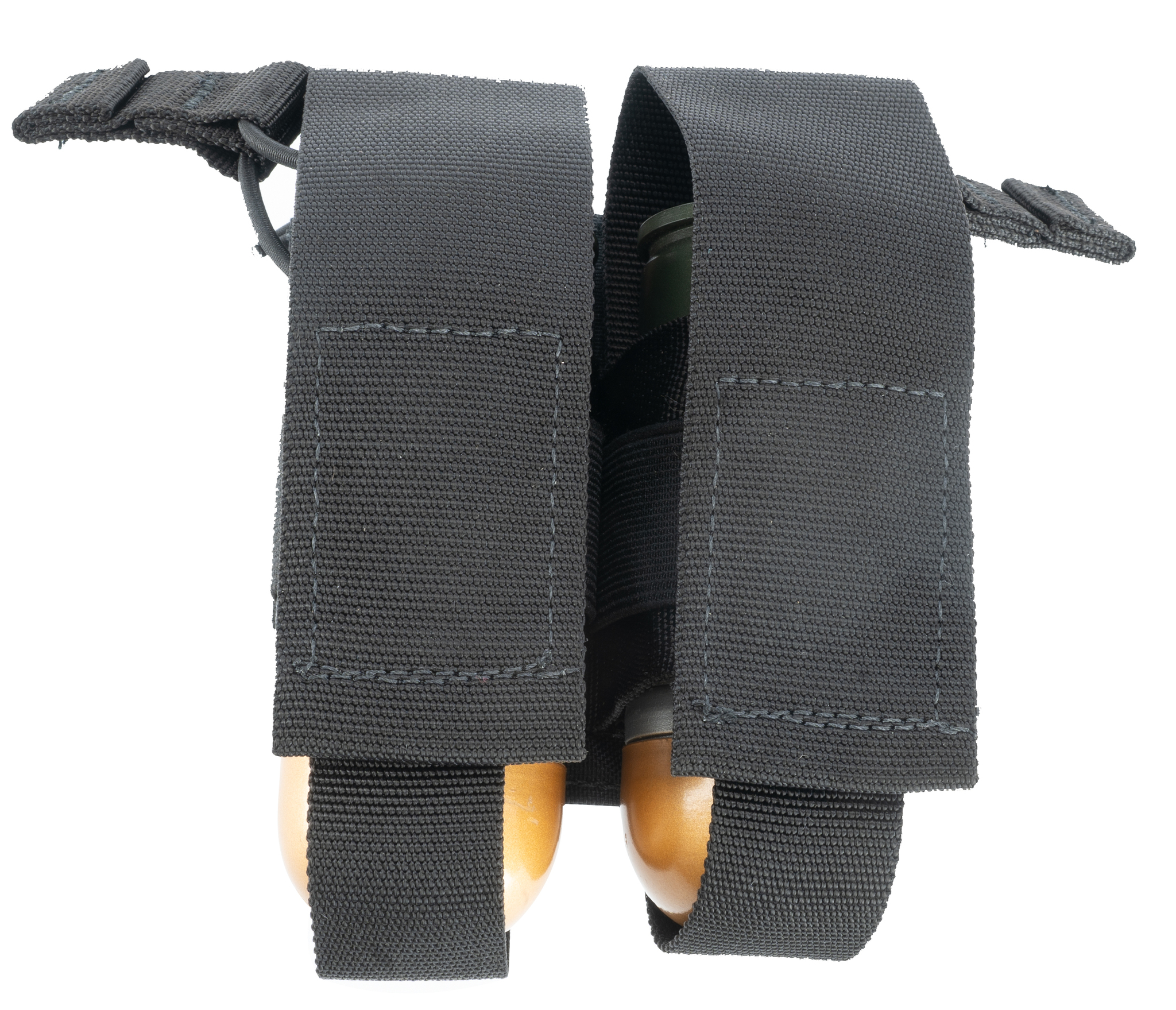The grenades can be held in the Lindnerhof PA213 either via the variable lid flap or the rubber cord. A half-round elastic band additionally secures the grenades in the pouch. The lid is removable and can be removed when not in use.