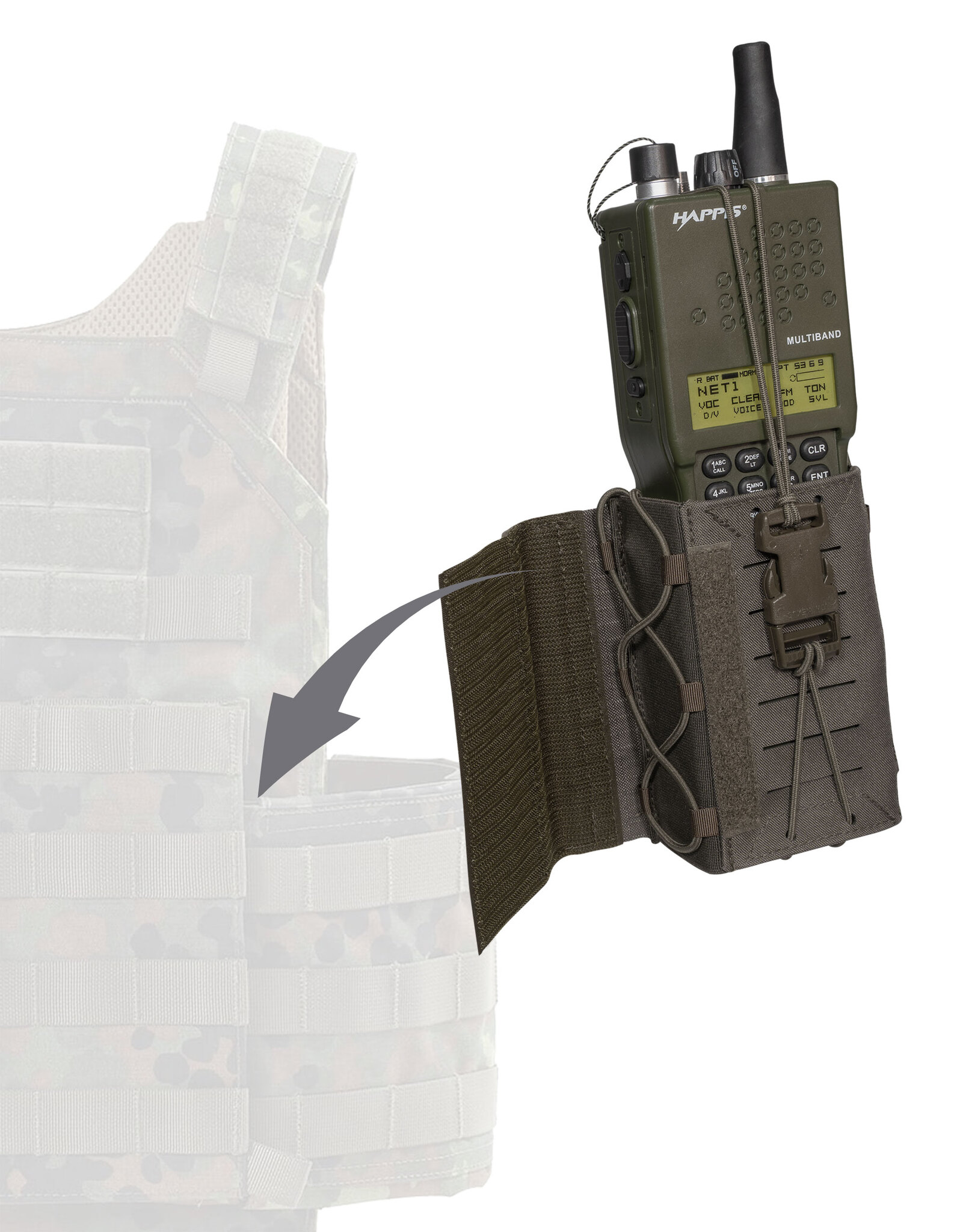 Think of the MX634 Modular Radio Pouch as a small construction kit. With this kit, they can put together the MX634 just as individual as you are" (statement from akob Kolbeck, CEO of Lindnerhof-Taktik), and as it best fits their mission requirements. The MX634 Modular Radio Pouch offers two ways to securely attach your radio gear, whether stowing a smartphone or an SEM52. One option is a classic buckle, the other (and faster) is a Velcro® closure. There are also ways to compress the bag to fit smaller radios - elastic inserts on the side and an adjustable cord make it possible.