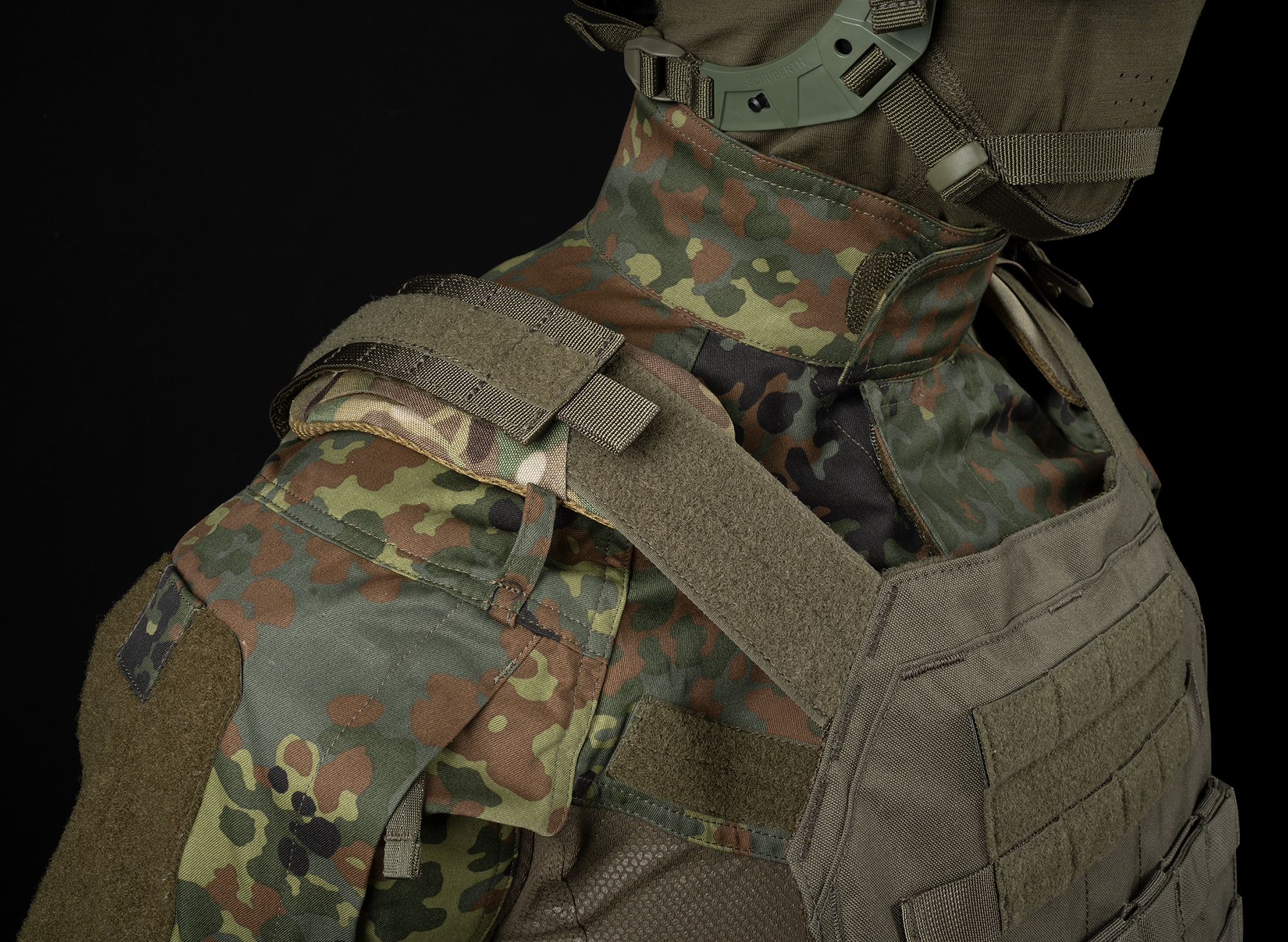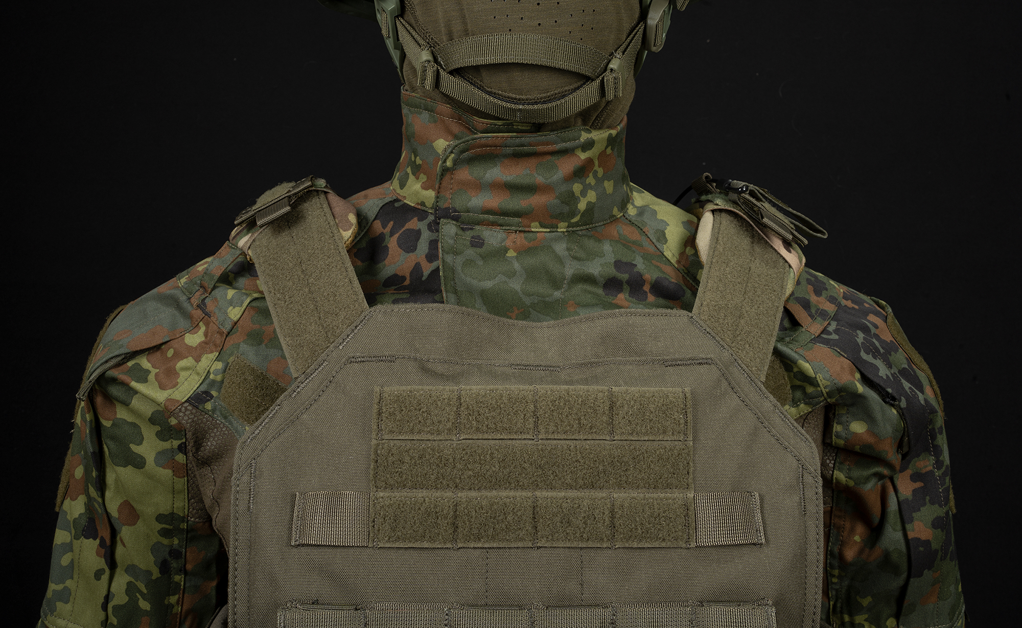 The slide-on shoulder pads can be looped onto the shoulder straps of all plate carriers with a maximum width of 6 cm.