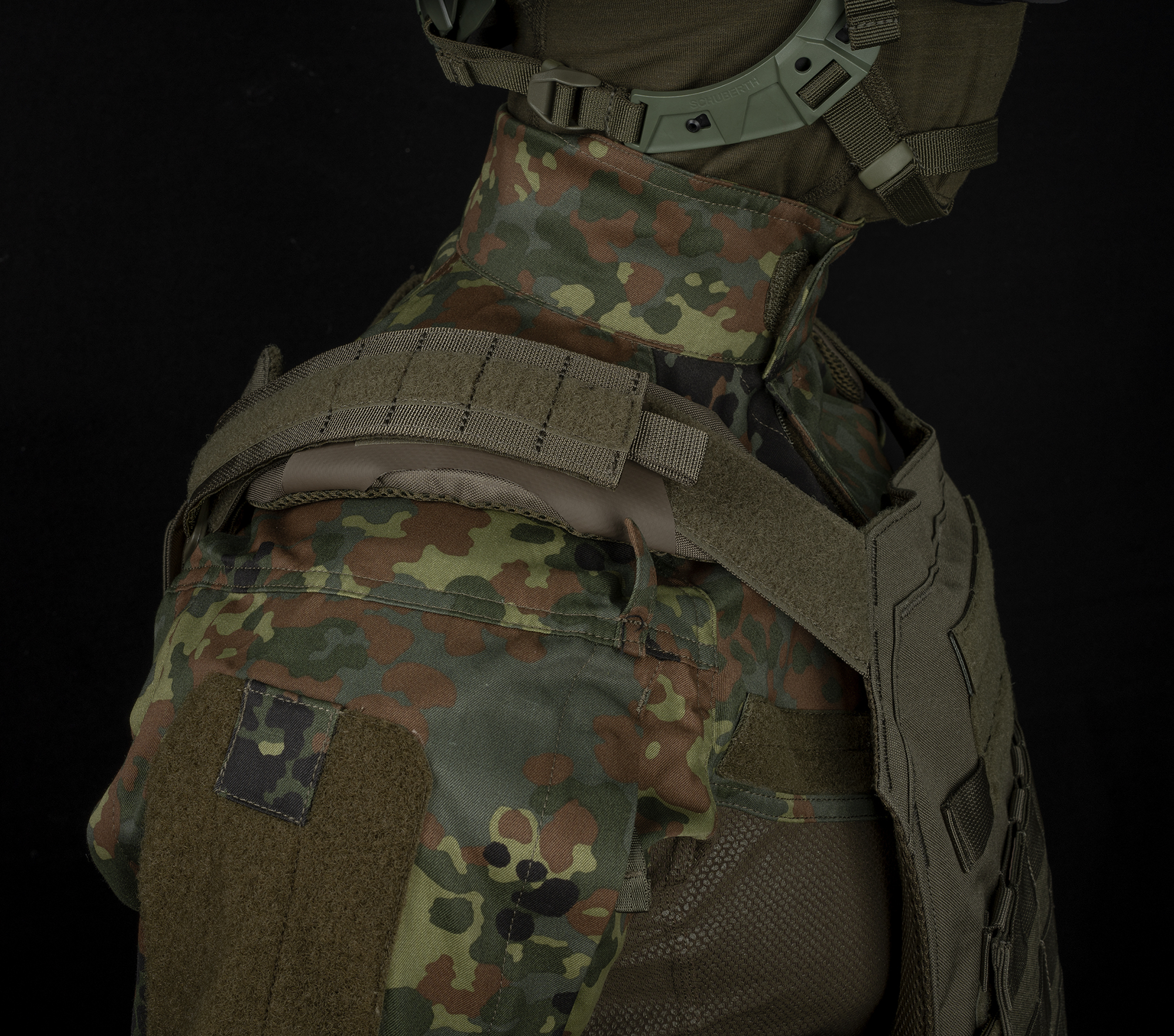 The slide-on shoulder pads can be looped onto the shoulder straps of all plate carriers with a maximum width of 6 cm.