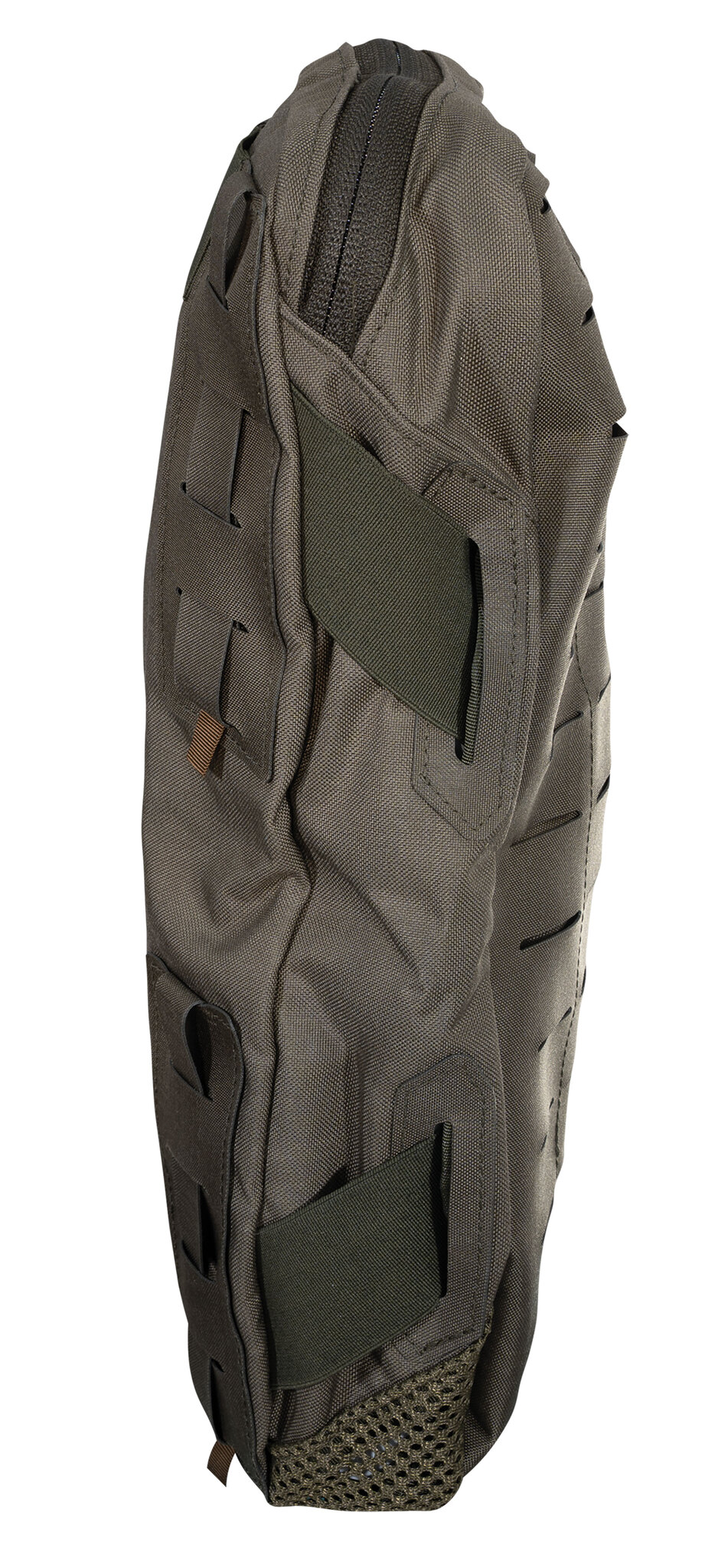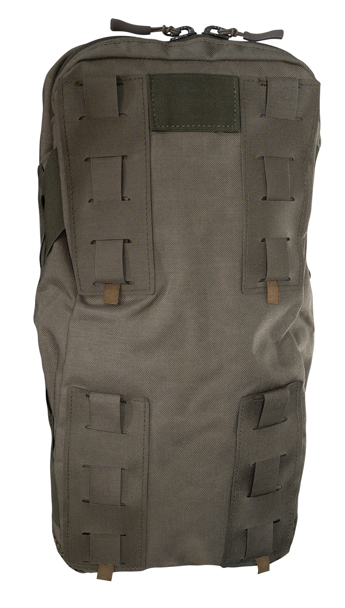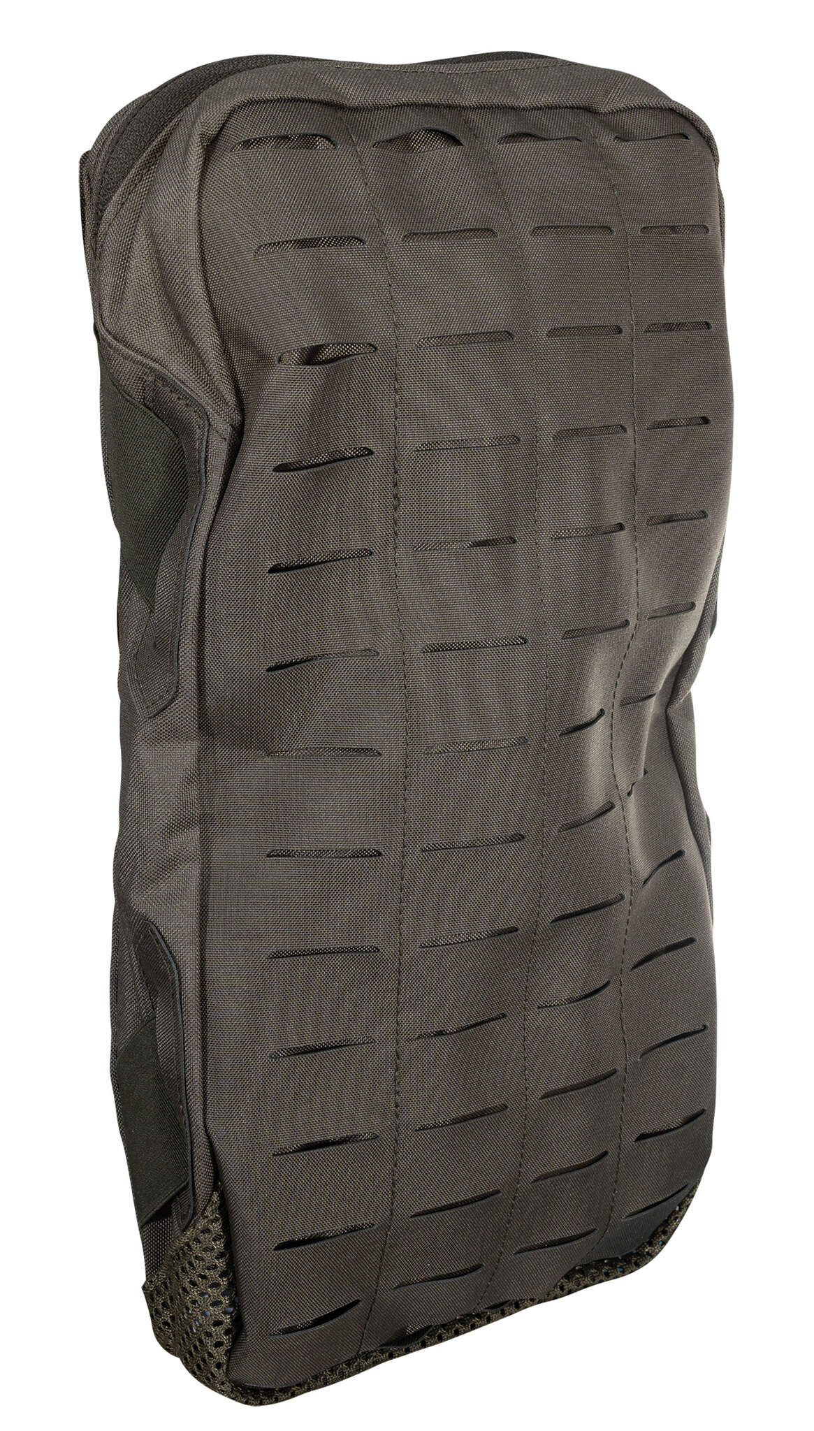 In principle, the water bladder carrier can be combined with 2 liter drinking bladders of all manufacturers. Here, an externally attached rubber webbing serves to fix the bladder and ensures that its contents are evenly distributed. The Lasercut MOLLE loops on the front allow you to attach additional bags and equipment. The bottom of the water bladder bag is made of durable mesh to prevent waterlogging.