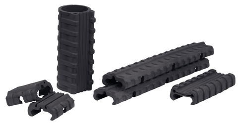 The 6-piece kit consists of: 2x Low Profile 6" Wire Routing Rail Guard, 1x Micro Pocket Switch Holder (NSN 1005-01-607-1663), 2x Wire Routing Cross Clips, 1x Vertical Grip Sleeve 1".