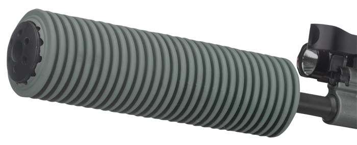 The Manta Suppressor Sleeve simply slides onto the silencer and provides a very good, firm grip. The material of the Manta Suppressor Sleeve is extremely abrasion resistant, heat resistant and chemical resistant, protects against heated metal and it reduces the IR signature of the gun. The suppressor sleeve is 3.8 inches in diameter and fits most popular .223, .300, .308, 5.56 and 7.62 silencers. The Suppressor Sleeve has no adverse effect on the action of the silencer.