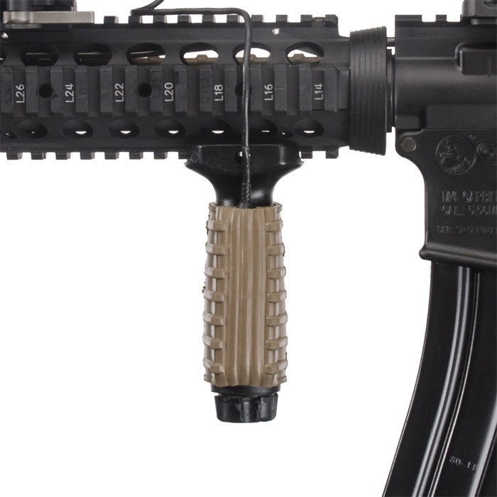 Manta Vertical Grip Sleeve Standard with integrated holder for a cable switch. The Grip Sleeve Standard is suitable for vertical fore-end grips up to 3 cm diameter and is simply plugged onto the grip. It provides a very good and firm grip. The material is extremely abrasion resistant, heat resistant and chemical resistant, it provides protection from the sharp edges, from heated metal and it reduces the IR signature of the gun.