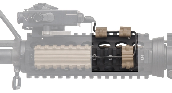 The Manta Wire Clips are simply plugged onto the rail and fix loose cables along the gun. The material of the Manta Wire Clips is extremely abrasion resistant, heat resistant and chemical resistant, it provides protection from the sharp edges, from heated metal and it reduces the IR signature of the weapon.