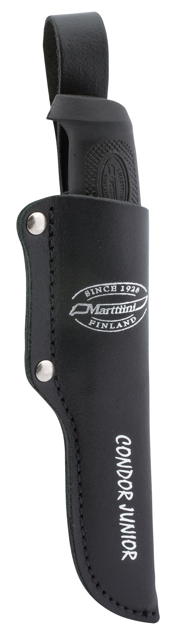 The Condor Junior Marttiini is the ideal first knife for younger knife users. The safe rounded tip protects the junior carver from puncture wounds and cuts. The blade is made of easy-care stainless steel. Sharpening the blade is, of course, the same as with the knives of experienced carvers. The roughened rubber handle and finger guard provide a secure grip on the knife. With its size, the handle also fits in the hand of a child. And to a real knife belongs of course in the right leather sheath. ATTENTION! NOT A TOY!