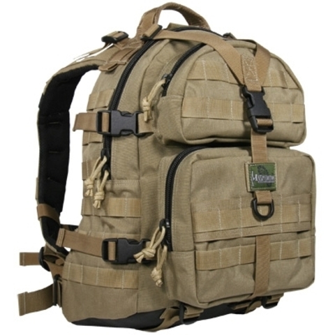 The Maxpedition Condor II backpack has a mid-sized design, but its surprisingly roomy interior holds over 30 liters and a 3L hydration bladder with b-directional hose connection (not included). What makes the Condor II unique, however, is that it comes with more PALS/ MOLLE loops than any other Maxpedition backpack available. The load capacity can be greatly expanded by using TacTie Attachment Straps to expand with a variety of Maxpedition bags. The backpack is made entirely of water and abrasion resistant 1000 denier nylon, which is triple PU coated on the inside and Teflon coated on the outside.