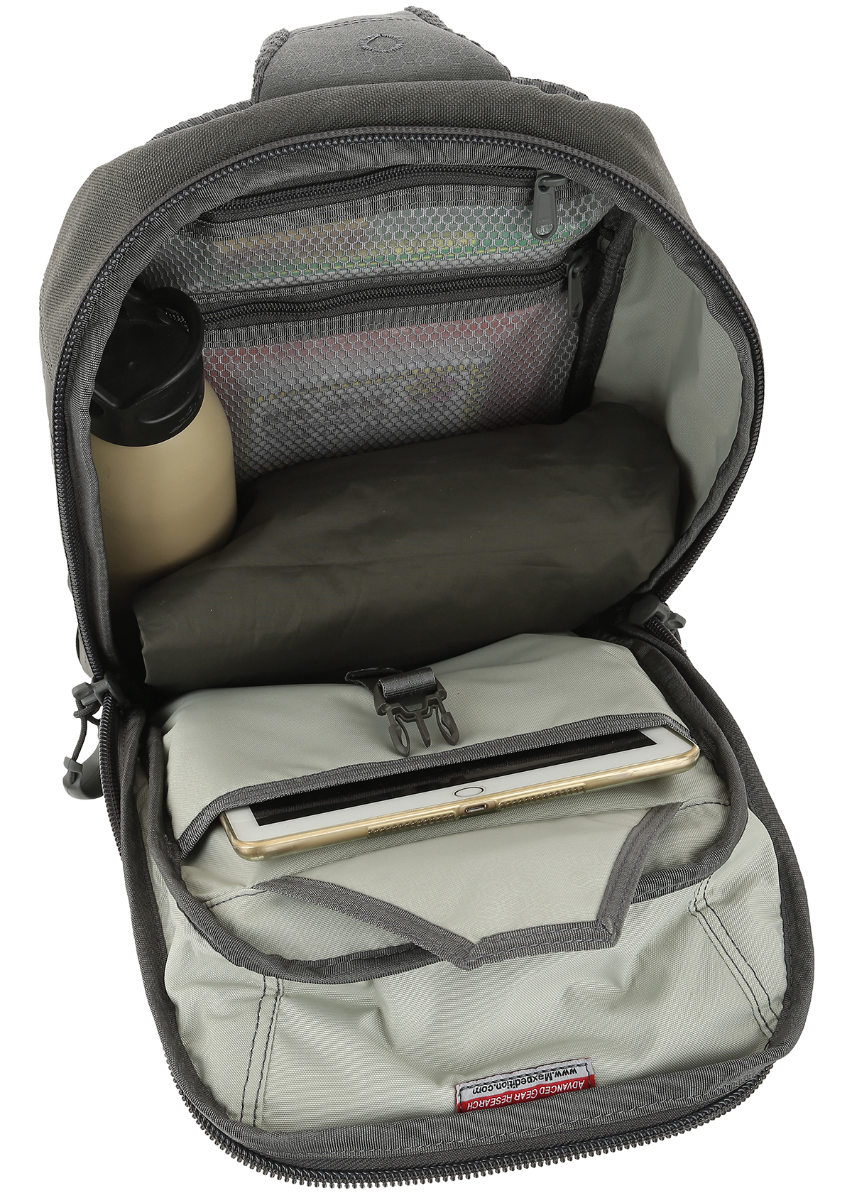 The Maxpedition Edgepeak 2.0 from the Advanced Gear Research series is a fully ambidextrous 18 liter sling pack that can be worn over the user's left or right shoulder.
