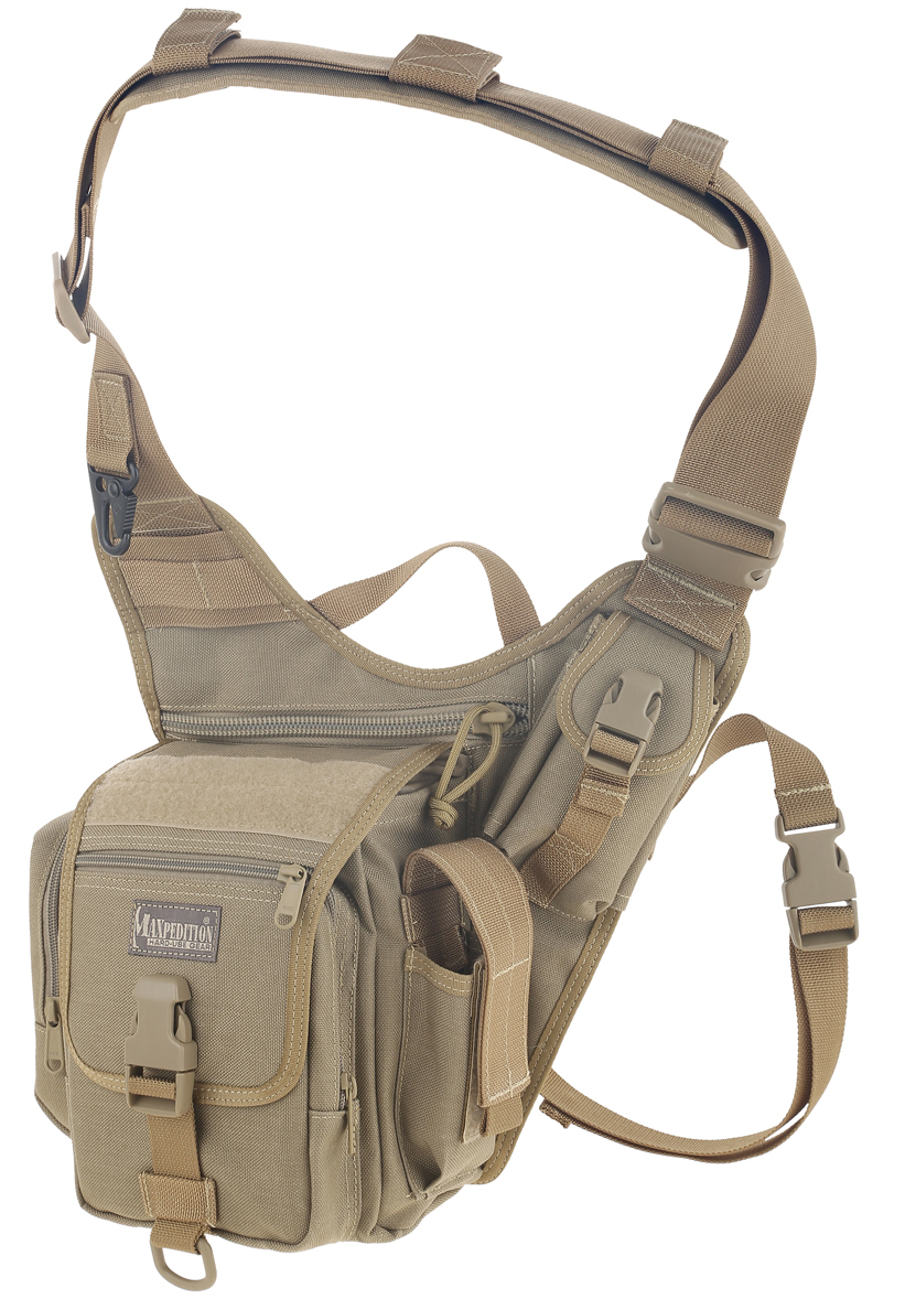 The Maxpedition FatBoy Versipack is a versatile shoulder bag with large main compartment and 4 zippered compartments. 2 outside pockets for e.g. magazines, defensive sprays, flashlight etc. The large zippered pocket on the back has a wide Velcro strip on the inside. Other Velcro items (e.g. holster) can be fixed there. Adjustable shoulder strap including carabiner and attachment loops. The back is padded extensively to improve carrying comfort and has a fixation for e.g. gloves. The FatBoy Versipack is made entirely of water- and abrasion-resistant 1050 denier nylon, which is triple PU coated on the inside and Teflon coated on the outside.